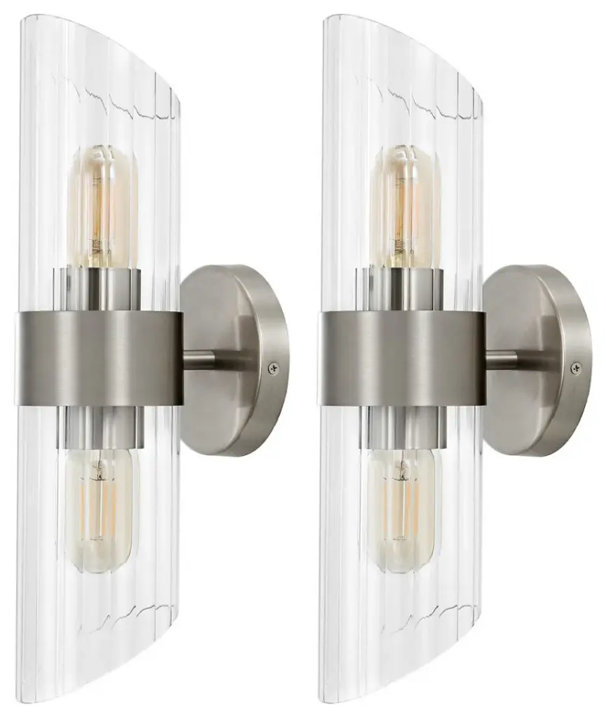 Give a sleek and elegant upgrade to your wall with our Eytan wall scones. A crisp, narrow silhouette and a beautiful mix of materials bring contemporary elegance to our wall sconce. The slender cylindrical shades are cut off at an angle to attain a stylish edge. It is completed with a lustrous brushed nickel finish to add a perfect touch of glam and elegance to your home. Featuring tubular bulbs on both sides, our set of wall sconces can be mounted both vertically and horizontally to cast a warm ambient glow upon a mirror, console table, or gallery wall.