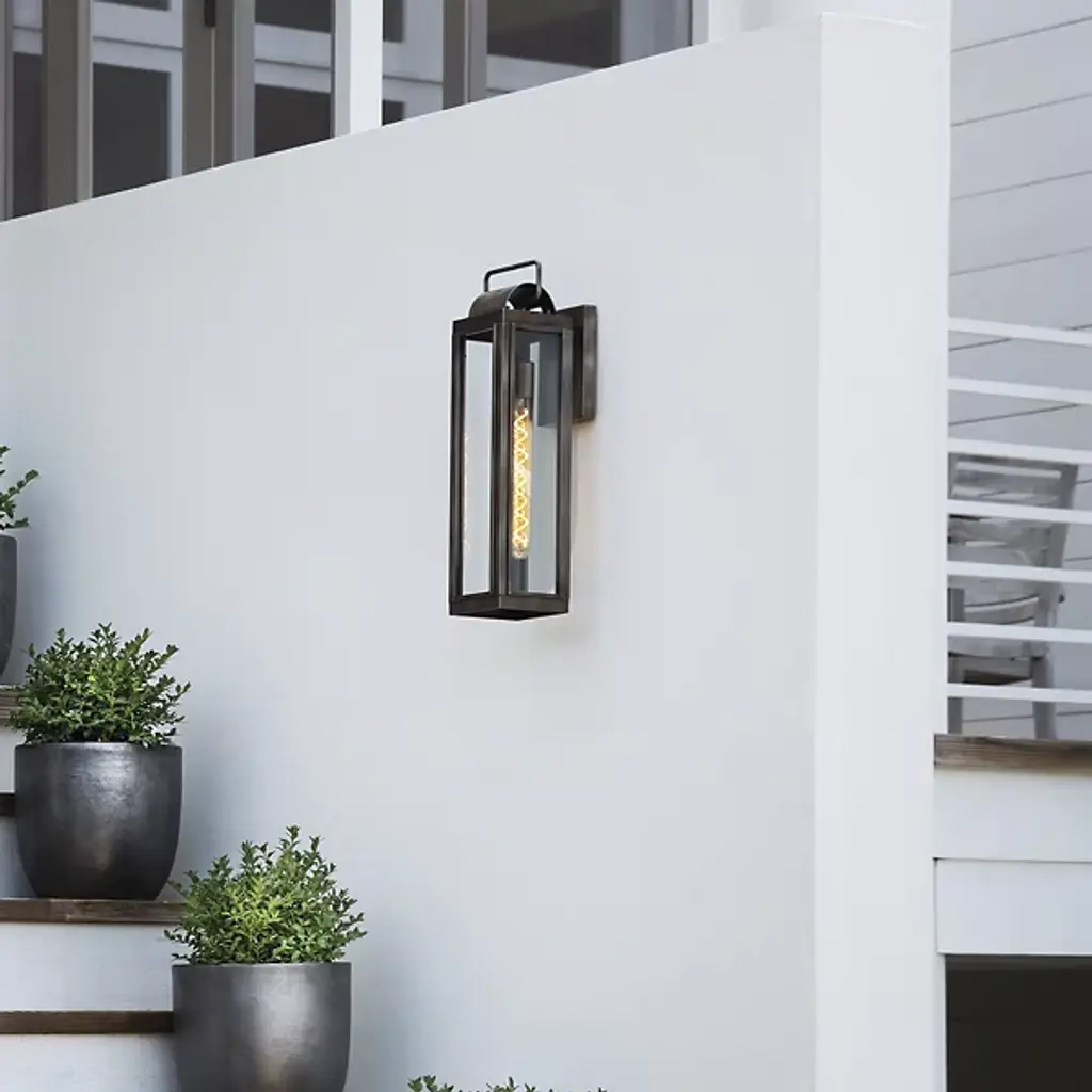 Undeniably contemporary while still sporting a slight flair of the nautical is the Sag Harbor Outdoor Wall Sconce by Hinkley Lighting. The fixture resembles gas lanterns commonly found in coastal towns throughout the world yet sports an update that allows it a perfect integration into modern living spaces. The fixture sports an aluminum build for durability while its rectangular profile utilizes a clear glass panel on each face. This glass allows the internal lamping to produce warm, uniform lighting.