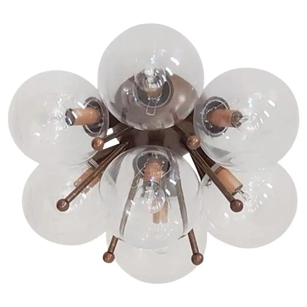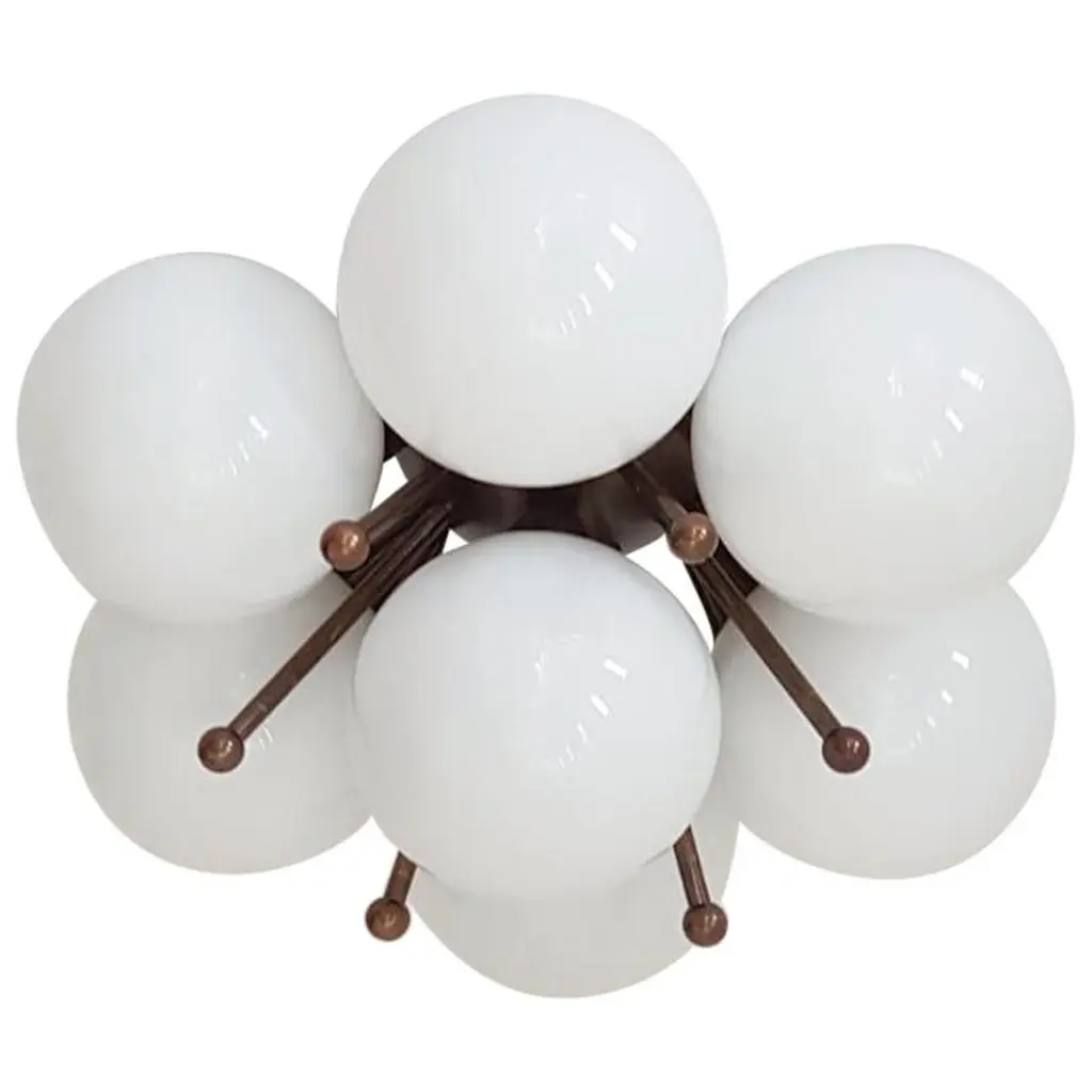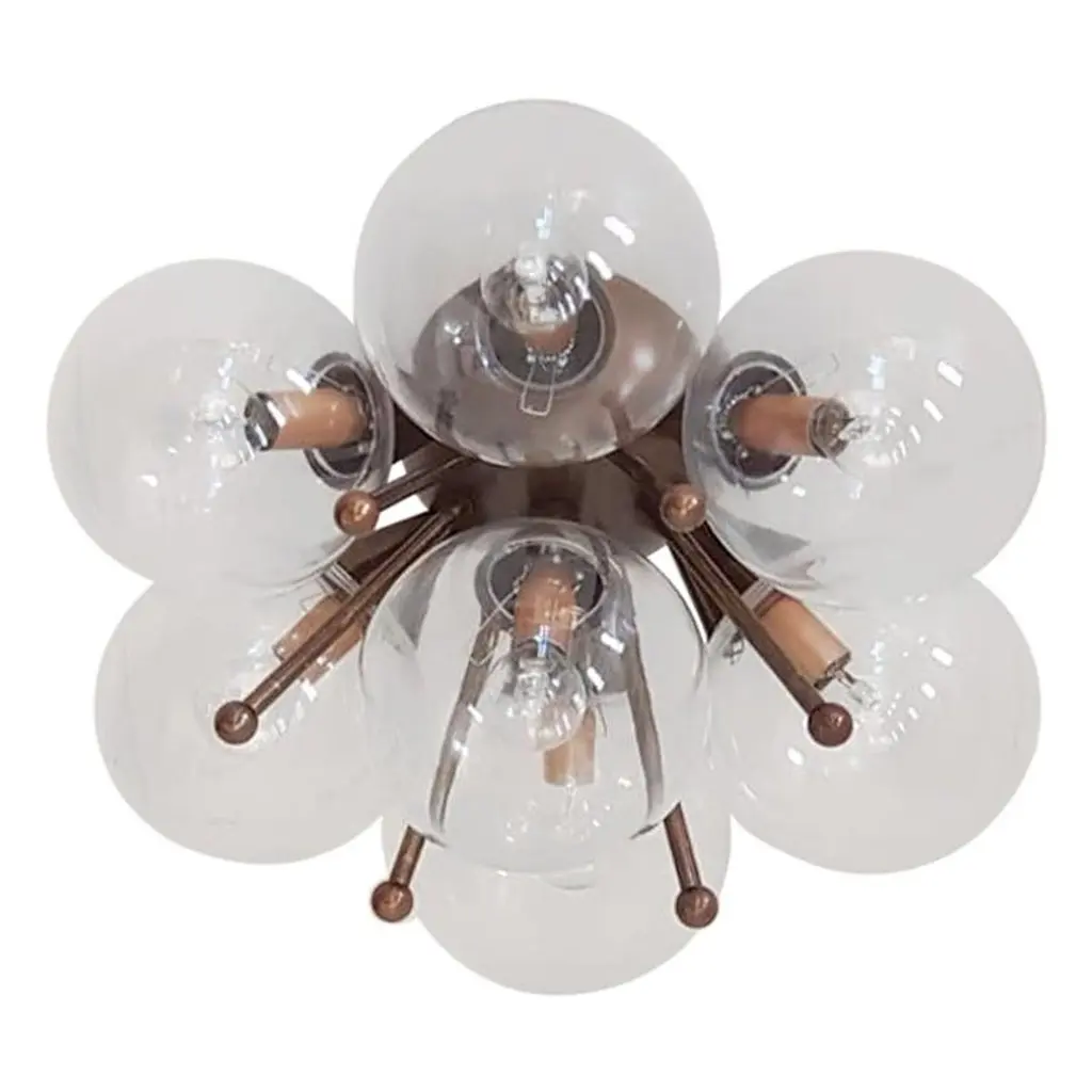 Italian flush mount with Murano glass globes mounted on solid brass frameDesigned by Fabio Bergomi / Made in Italy7 lights / E12 or E14 type / max 40W eachDiameter: 22 inches / Height: 11 inchesOrder only / This item ships from ItalyOrder Reference #: FABIOLTD SAKURAThe listed price applies to the following finishes : Bronzed, Polished Chrome, Satin Chrome, Polished Nickel, Satin Nickel, Polished Black Nickel, Satin Black Nickel, Polished Copper, Satin CopperOther finishes are available : Unlacquered Natural Brass, Unlacquered Polished Brass, Lacquered Polished Brass, Lacquered Satin Brass.