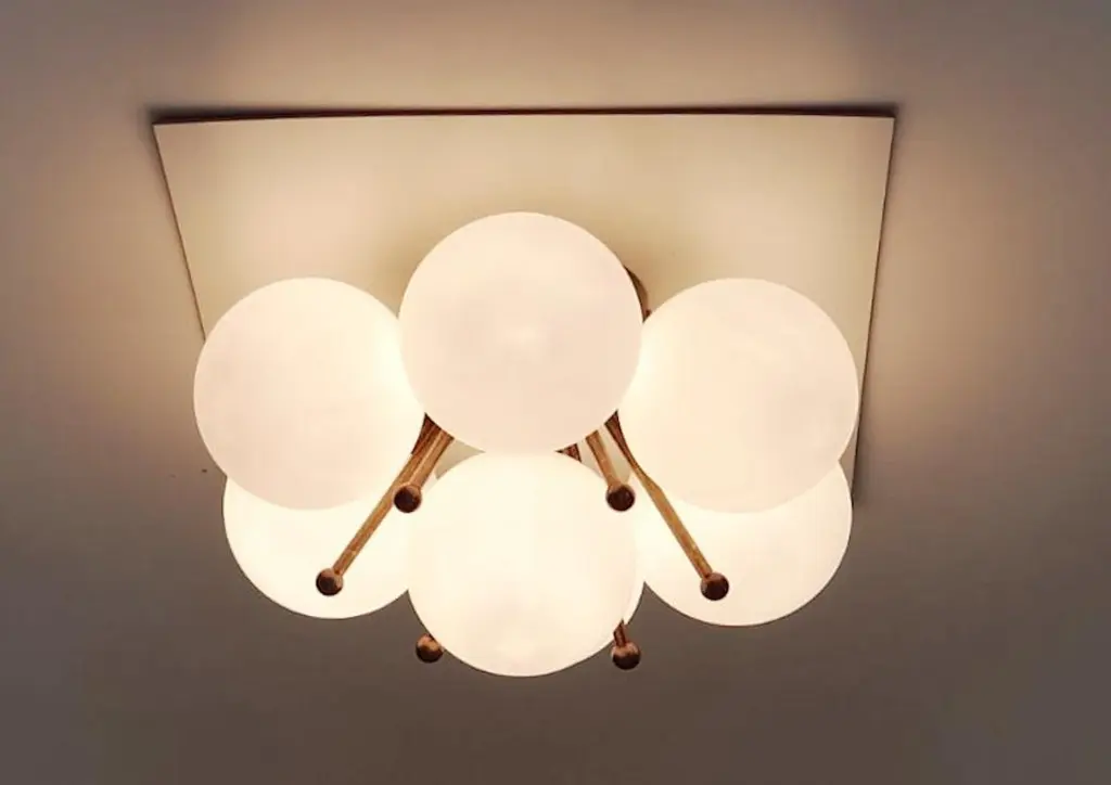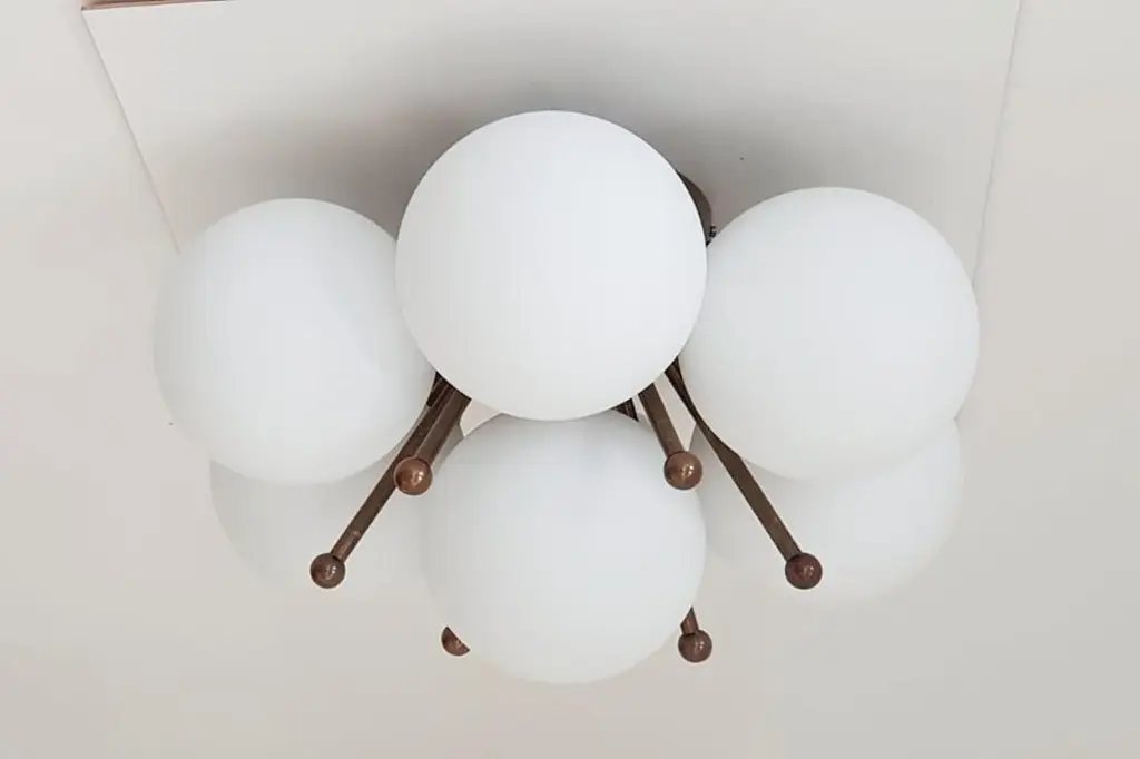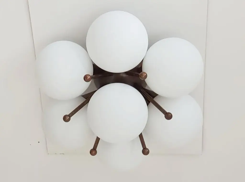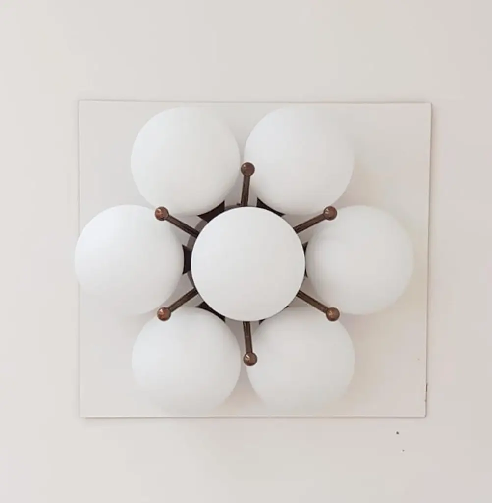 Italian flush mount with Murano glass globes mounted on solid brass frameDesigned by Fabio Bergomi / Made in Italy7 lights / E12 or E14 type / max 40W eachDiameter: 22 inches / Height: 11 inchesOrder only / This item ships from ItalyOrder Reference #: FABIOLTD SAKURAThe listed price applies to the following finishes : Bronzed, Polished Chrome, Satin Chrome, Polished Nickel, Satin Nickel, Polished Black Nickel, Satin Black Nickel, Polished Copper, Satin CopperOther finishes are available : Unlacquered Natural Brass, Unlacquered Polished Brass, Lacquered Polished Brass, Lacquered Satin Brass.