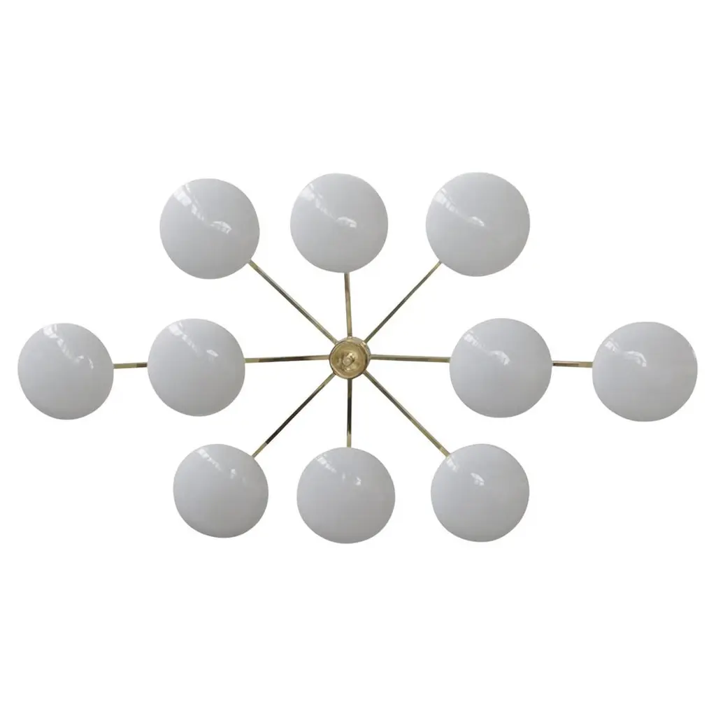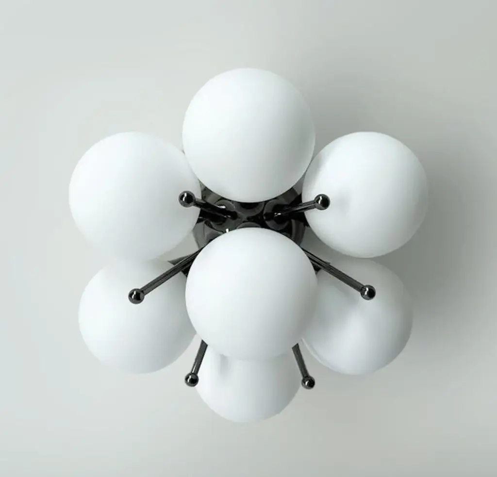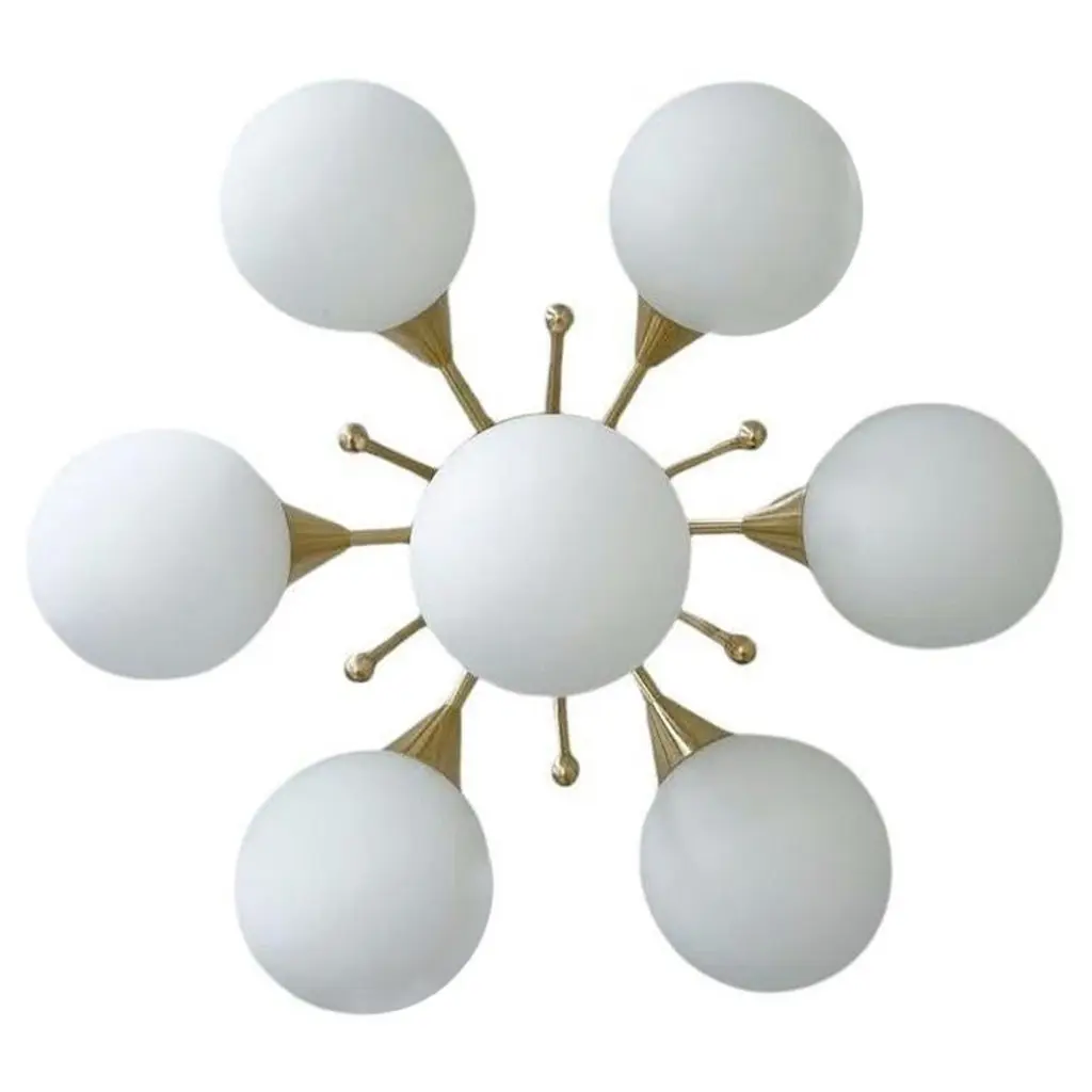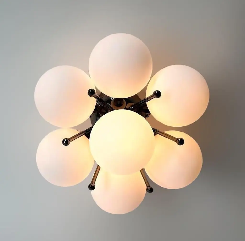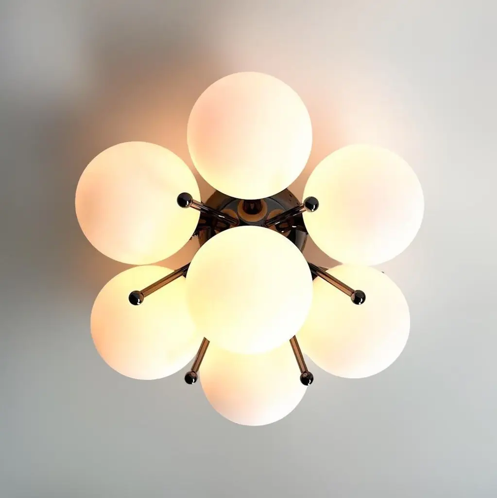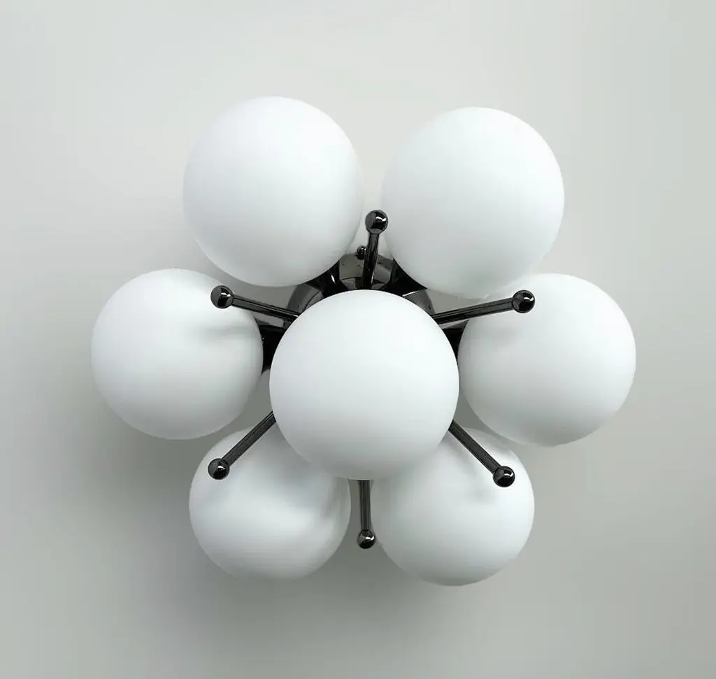 Italian flush mount with Murano glass globes mounted on solid brass frameDesigned by Fabio Bergomi / Made in Italy7 lights / E12 or E14 type / max 40W eachDiameter: 22 inches / Height: 11 inchesOrder only / This item ships from ItalyOrder Reference #: FABIOLTD SAKURAThe listed price applies to the following finishes : Bronzed, Polished Chrome, Satin Chrome, Polished Nickel, Satin Nickel, Polished Black Nickel, Satin Black Nickel, Polished Copper, Satin CopperOther finishes available : Unlacquered Natural Brass, Unlacquered Polished Brass, Lacquered Polished Brass, Lacquered Satin Brass