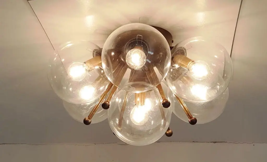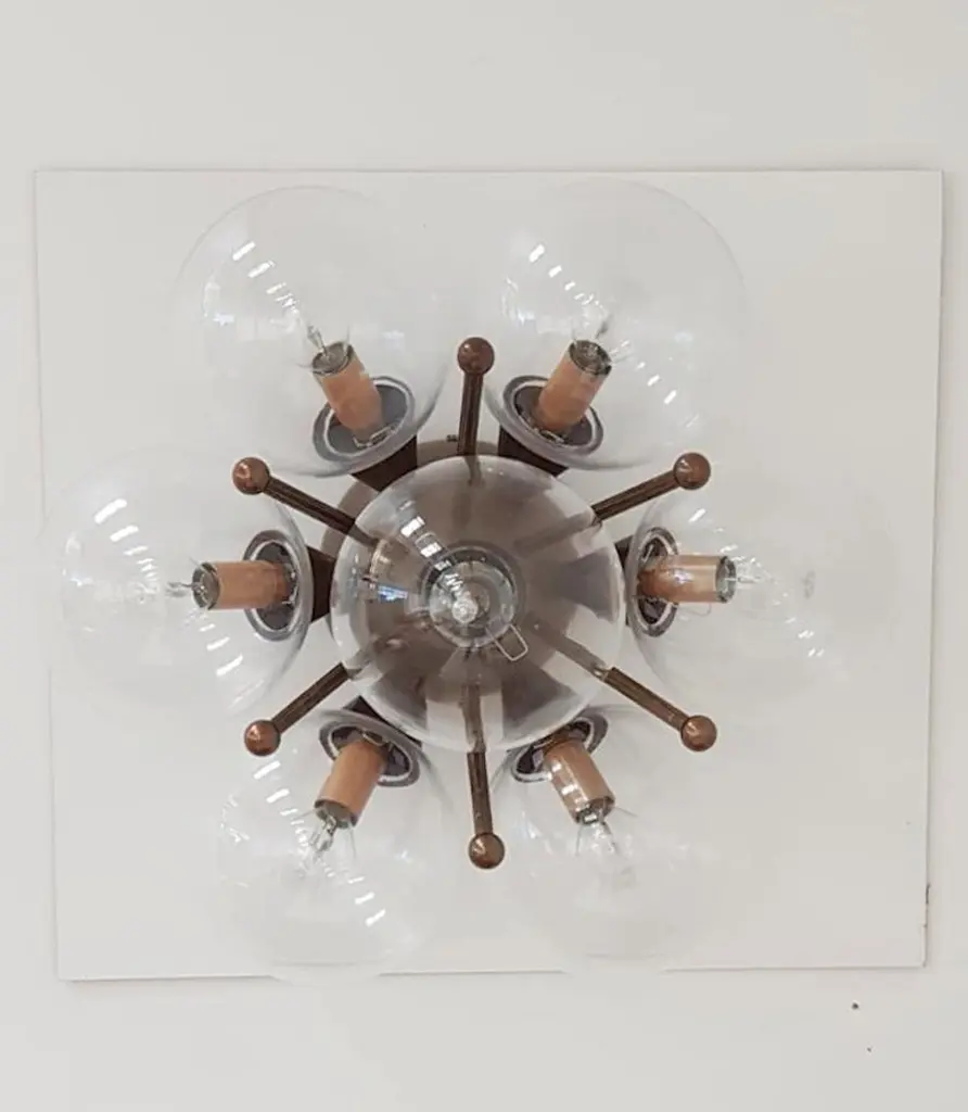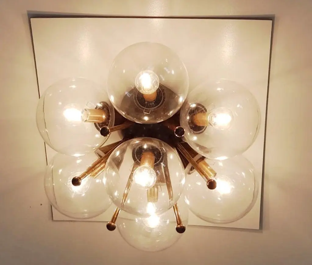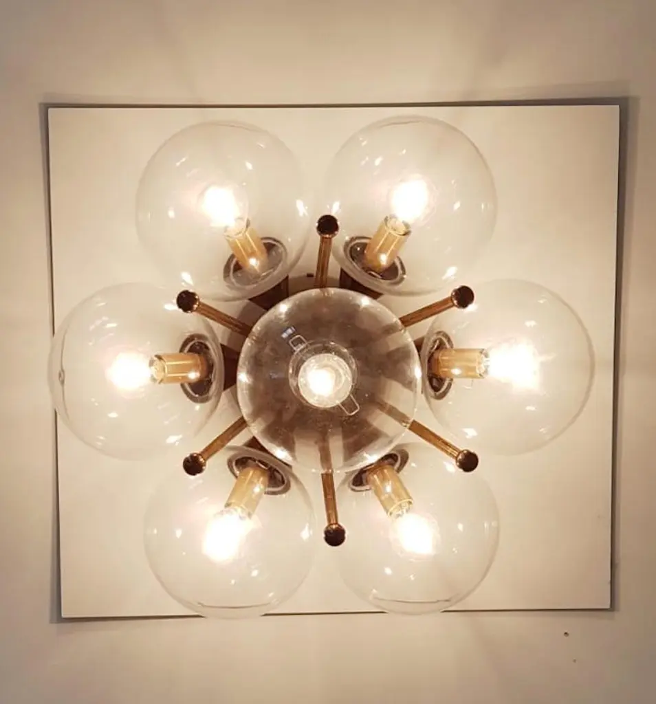 Italian flush mount with Murano glass globes mounted on solid brass frameDesigned by Fabio Bergomi / Made in Italy7 lights / E12 or E14 type / max 40W eachDiameter: 22 inches / Height: 11 inchesOrder only / This item ships from ItalyOrder Reference #: FABIOLTD SAKURAThe listed price applies to the following finishes : Bronzed, Polished Chrome, Satin Chrome, Polished Nickel, Satin Nickel, Polished Black Nickel, Satin Black Nickel, Polished Copper, Satin CopperOther finishes available : Unlacquered Natural Brass, Unlacquered Polished Brass, Lacquered Polished Brass, Lacquered Satin Brass