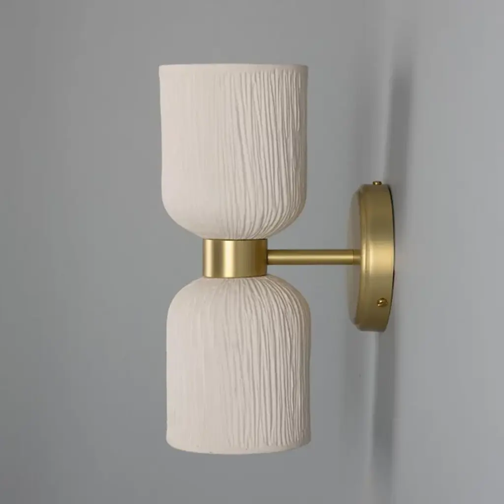 The Sakura Wall Sconce from Mullan Lighting brings a touch of handcrafted charm to any space, combining sculptural design with a beautifully textured finish. Its double-shade design softly directs light both upward and downward, creating a warm, inviting glow. A brass divider and arm add a touch of elegance, making it a perfect fit for both modern and classic interiors. Whether brightening bedrooms, hallways, or living rooms, it adds a cozy, welcoming ambiance wherever it's placed.