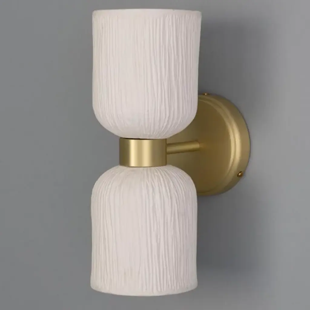 The Sakura Wall Sconce from Mullan Lighting brings a touch of handcrafted charm to any space, combining sculptural design with a beautifully textured finish. Its double-shade design softly directs light both upward and downward, creating a warm, inviting glow. A brass divider and arm add a touch of elegance, making it a perfect fit for both modern and classic interiors. Whether brightening bedrooms, hallways, or living rooms, it adds a cozy, welcoming ambiance wherever it's placed.