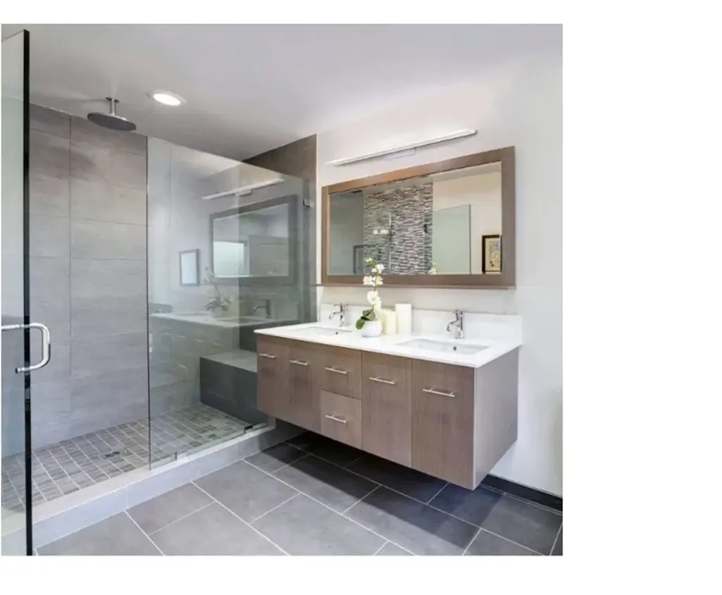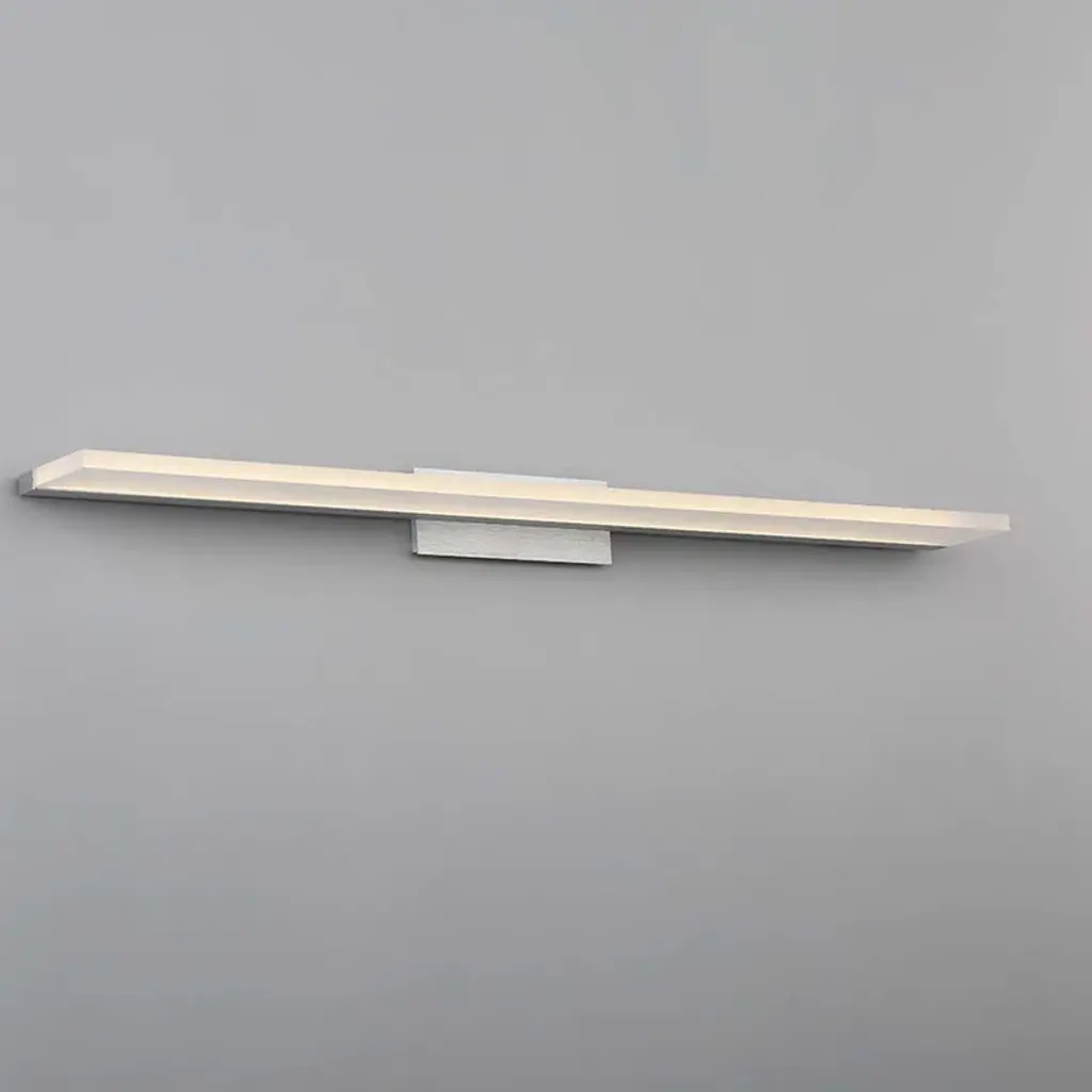 A sleek thin acrylic lens on a low profile back plate illuminates outwards to create an inviting atmosphere. This Bath Bar can be installed in a multitude of applications as a bathroom vanity fixture or wall sconce.