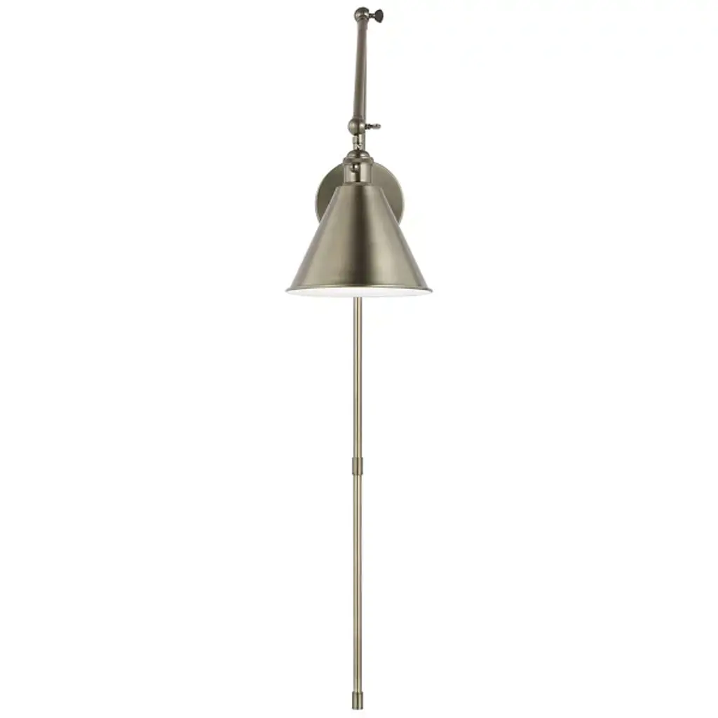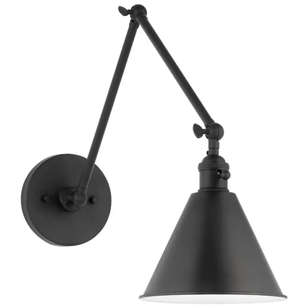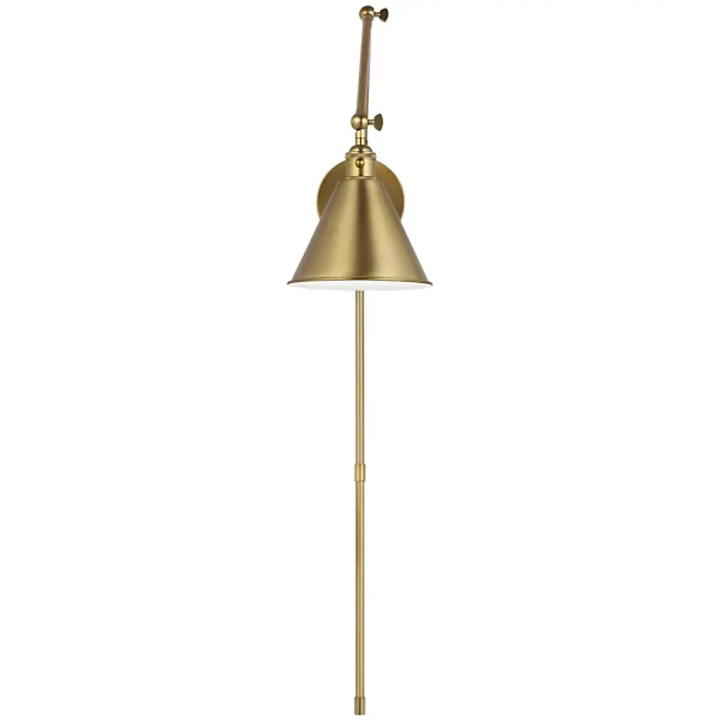 Bring flexibility to your lighting and vintage glamour to your home décor with the Salem Double Arm Wall Sconce from Visual Comfort Studio, formerly known as Sea Gull Lighting, The piece takes a page from industrial design as it meshes form with functionality. Even with space constraints, the piece looks natural on the wall as it mounts with a compact, low-profile backplate. The sconce's double adjustable arms maximize the design's functionality. On the aesthetic side, a steel lamp holder draws you in with texture-rich knurled accenting. The charming cone shade rotates to give you a directed, glare-reduced light source suited for late-night reading sessions or a welcoming ambiance.