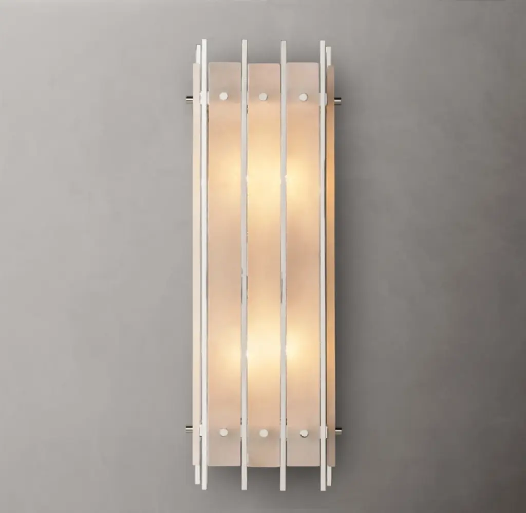 Our fixture by renowned designer Theo Eichholtz evokes the glamour of 1960s Italian lighting. Arranged within a sleek metal frame, translucent alabaster panes produce a dramatic play of light and a softly diffused glow.ALSO AVAILABLE IN GLASS SHOP THE ENTIRE COLLECTION