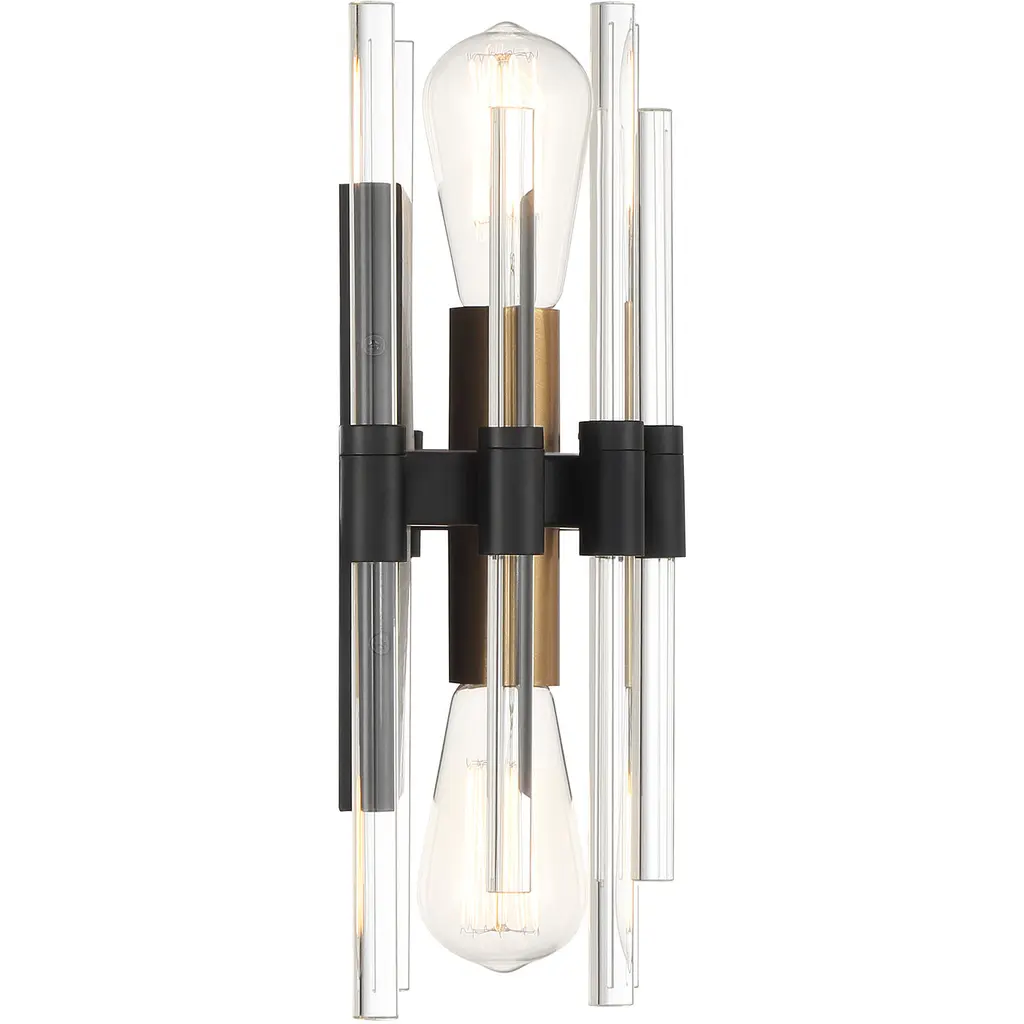 Santiago 2 Light 8 Inch Black With Warm Brass Accents Wall Sconce Wall Light