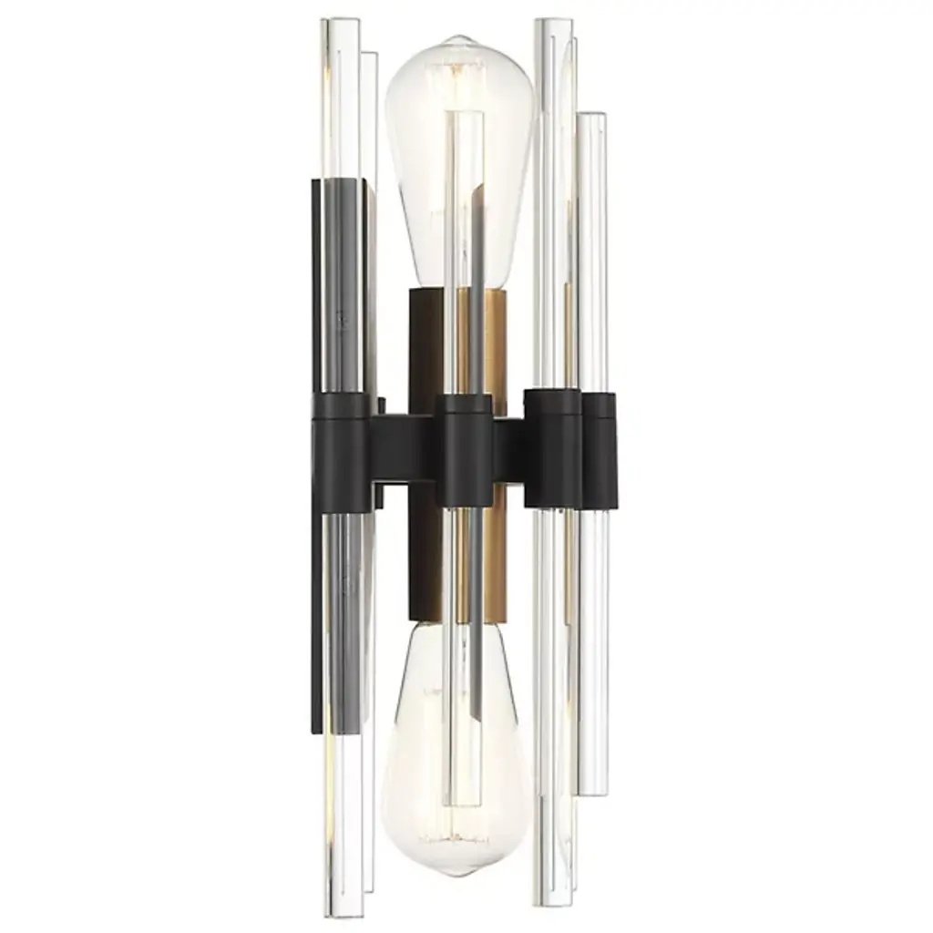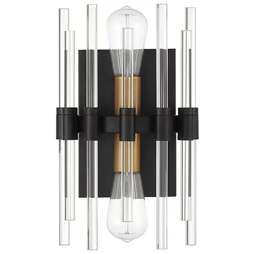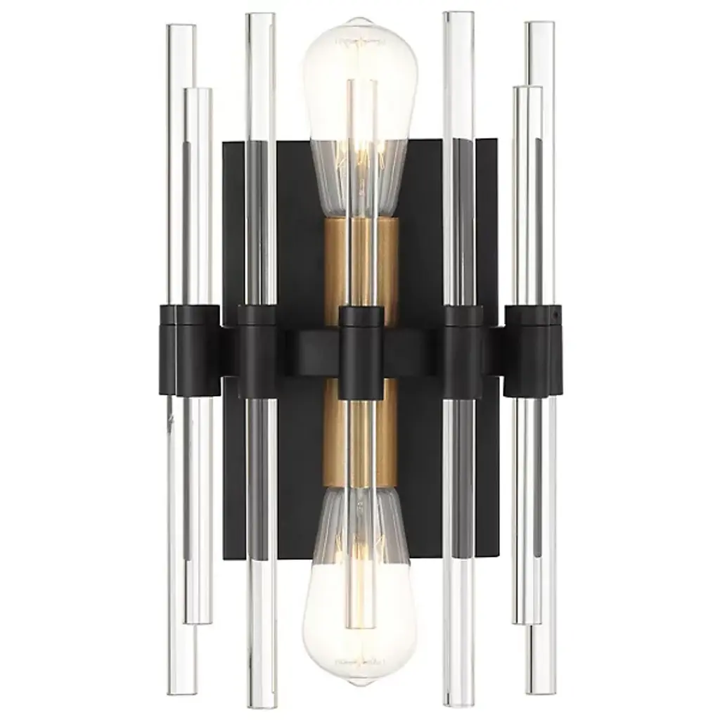 The Santiago Wall Sconce by Savoy House merges refined and rustic design to create a memorable lighting experience. Inspired by the classic Sputnik design, this piece design surrounds exposed vintage lamping with an array of crystal wands. This creates a dynamic lighting effect, blending a warm, unobstructed ambiance with shimmering, reflective light. Ideal for damp and dry locations, this lamp is as versatile as it is a bold mix of transitional and mid-century modern style.