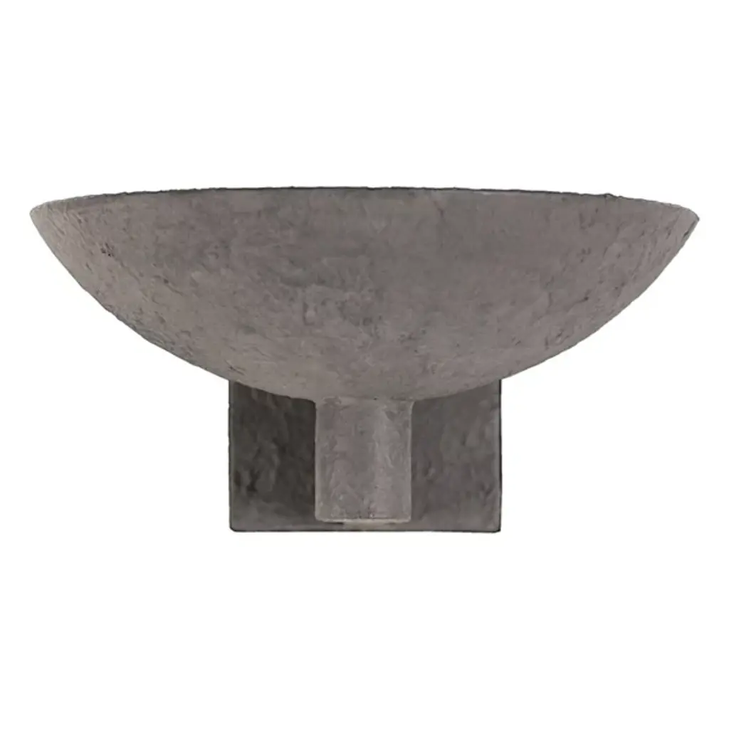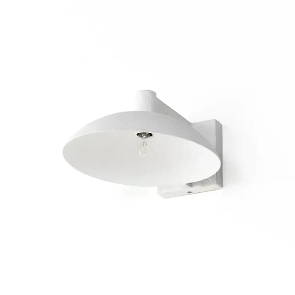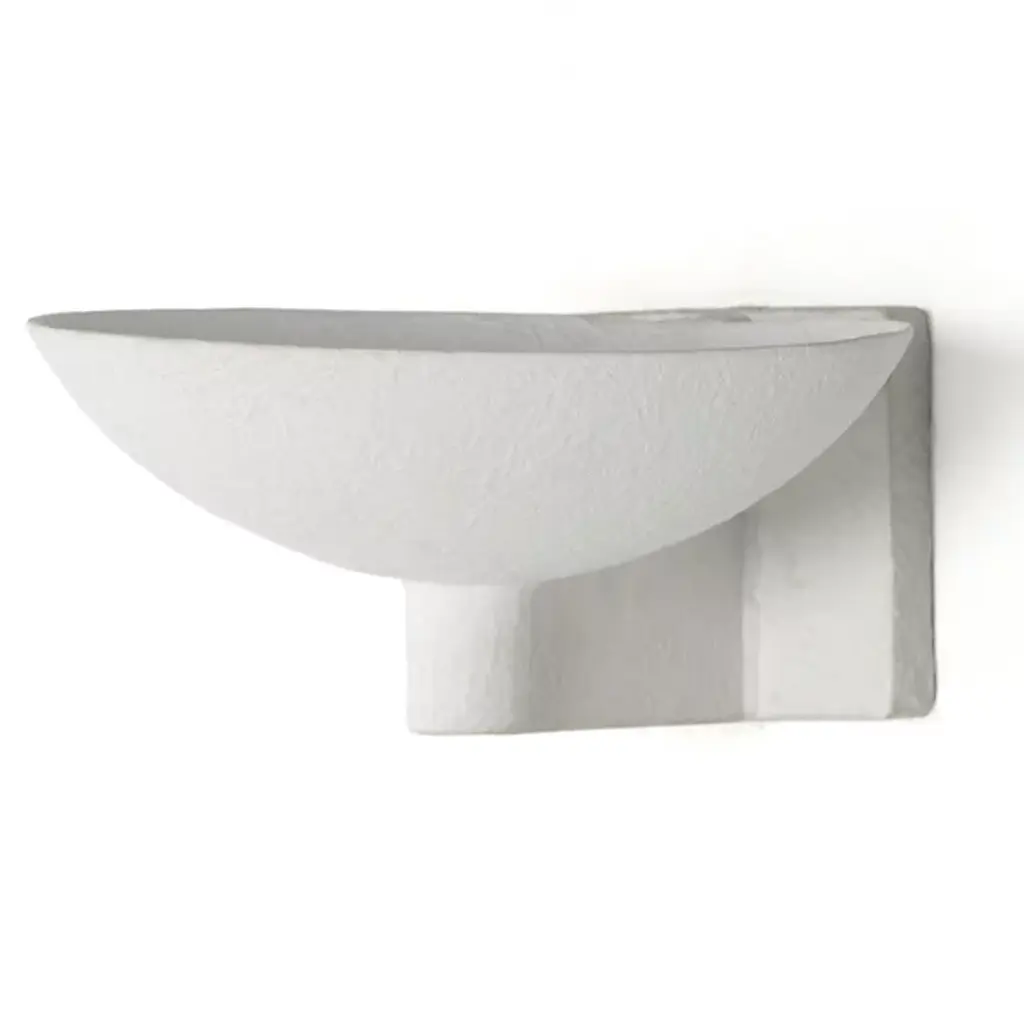Elegant and arcing, with an enduring modern versatility. The Santorini Wall Sconce from Four Hands emerges from a cast iron wall plate and central armature, accompanied by a shallow dish shade that sweeps around the lamping. The fixture can be oriented upwards or downwards, delivering an upward-broadcast glow or a focused and hooded downlight ideal for task use.