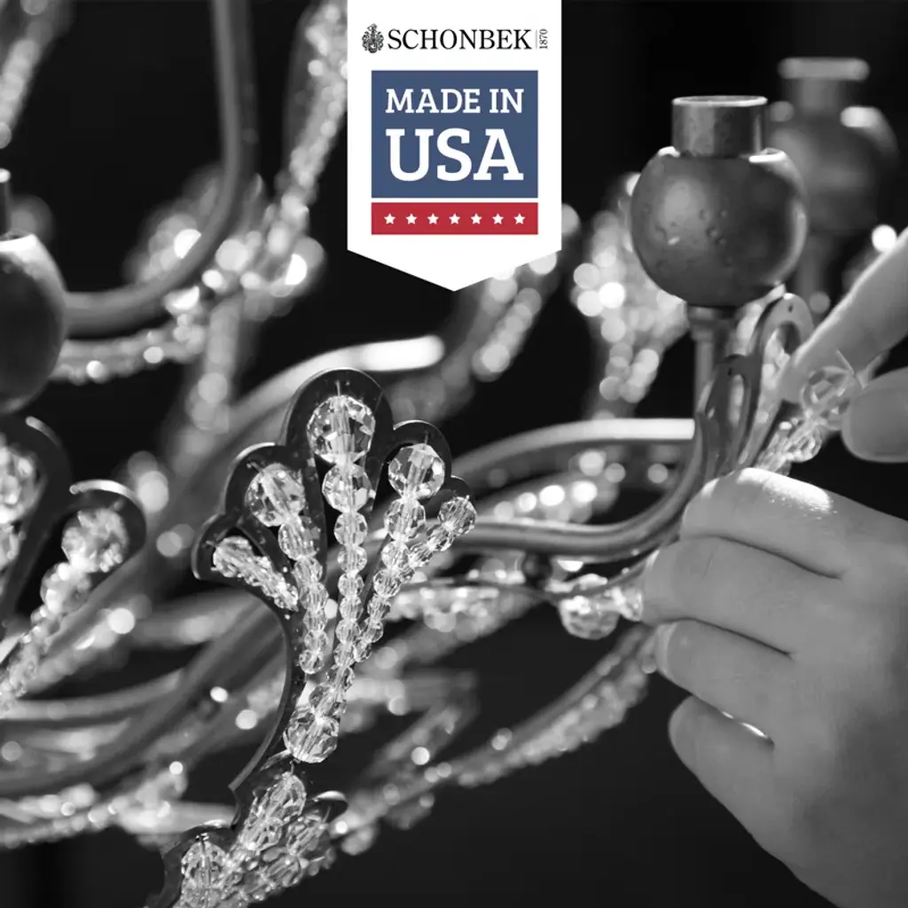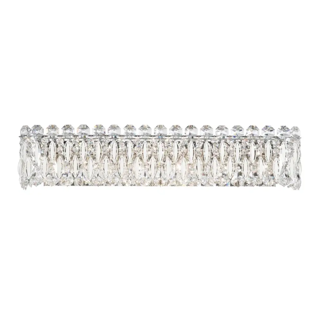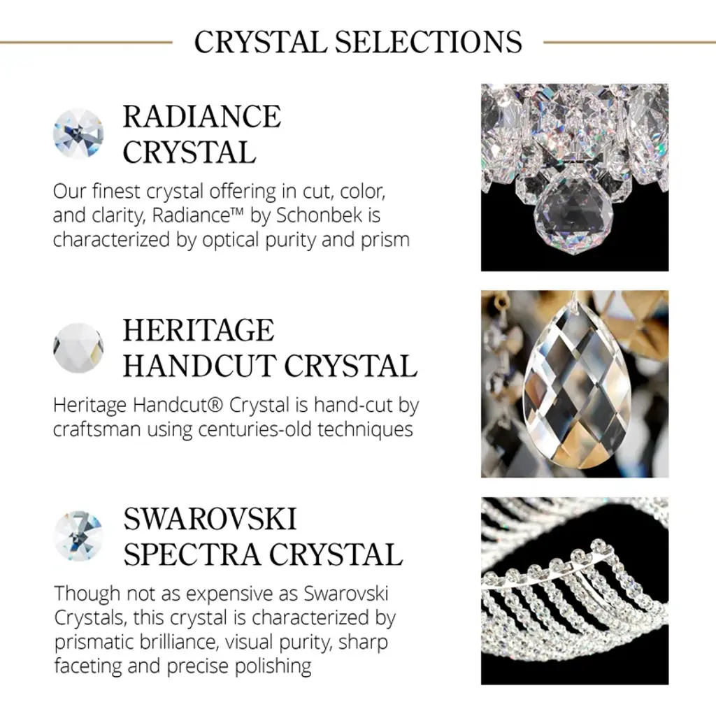 A waterfall of metal discs and crystal beading glimmers around fine glass arms. Sarella is a classic marriage of hand-finished metal and multifaceted crystal drops that shed a beautiful soft light on your interior. An instant heirloom has been interpreted in different styles from the traditional frame enhanced by round branches to the simple bejeweled columns perfect for intimate areas.