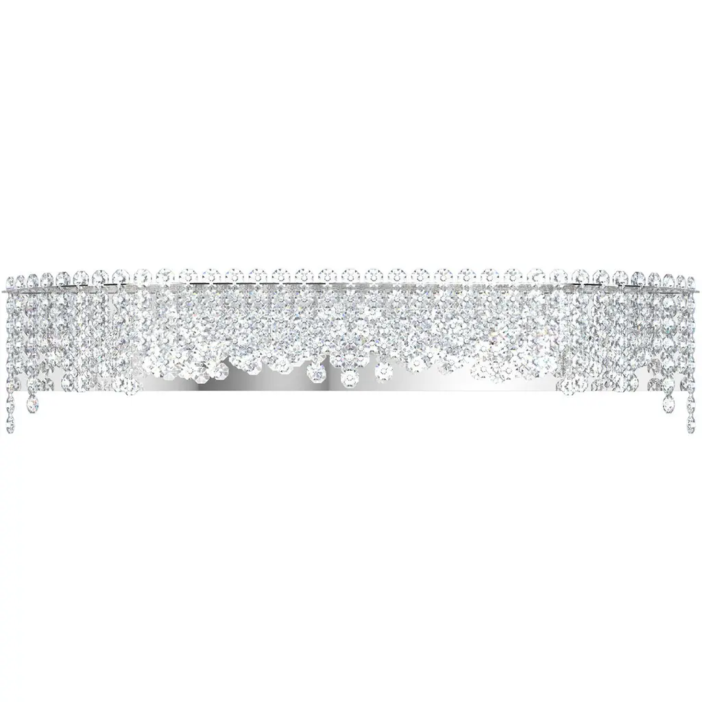A waterfall of metal discs and crystal beading glimmers around fine glass arms. Sarellas classic marriage of hand-finished metal and multifaceted crystal drops sheds a beautiful, soft light on your interior. An instant heirloom, it has been interpreted in different styles, from the traditional frame enhanced by round branches, to the simple bejeweled columns perfect for intimate areas.