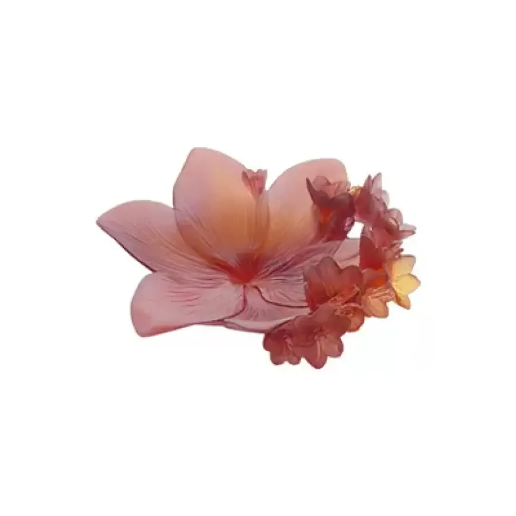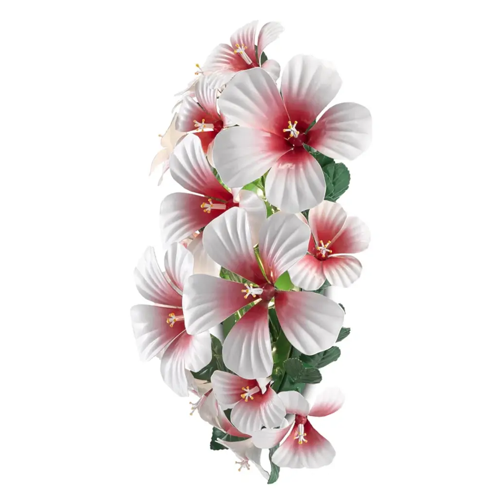 This collection is inspired by the craftsmanship of fine jewelry, runway fashion trends, and the beauty of nature itself. Its name is short for Azucena, a "Madonna Lily" in Spanish. This leaf sconce features a flirtatious interplay of crystal with white and brushed metal floral adornments creates a romantic atmosphere emanating feelings of joy and the celebration of life.