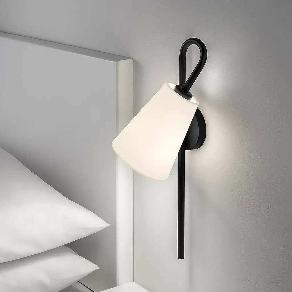 An Elegantly Tall Vertical Column Loops And Crosses Over The Top To Hold A Fabric Shade. The Wall Light Is Available Left Or Right-handed (L Or R Within Model Number) So That The Shade Can Point Towards The Bed, Making Them Perfect For Guestroom Use.