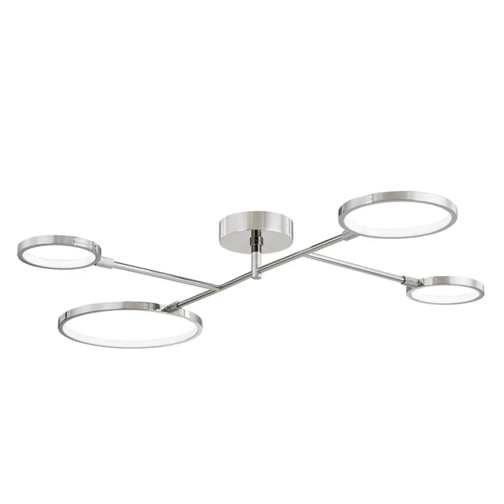 With a beautifully balanced sense of asymmetry, Saturn’s rings branch out from moveable arms along an axis. Each ring-shaped shade has an LED-lined interior creating cosmic orbits of bright, even light. Available as a sconce, flush mount and chandelier in Aged Brass, Old Bronze and Polished Nickel, Saturn can find a home in any space.