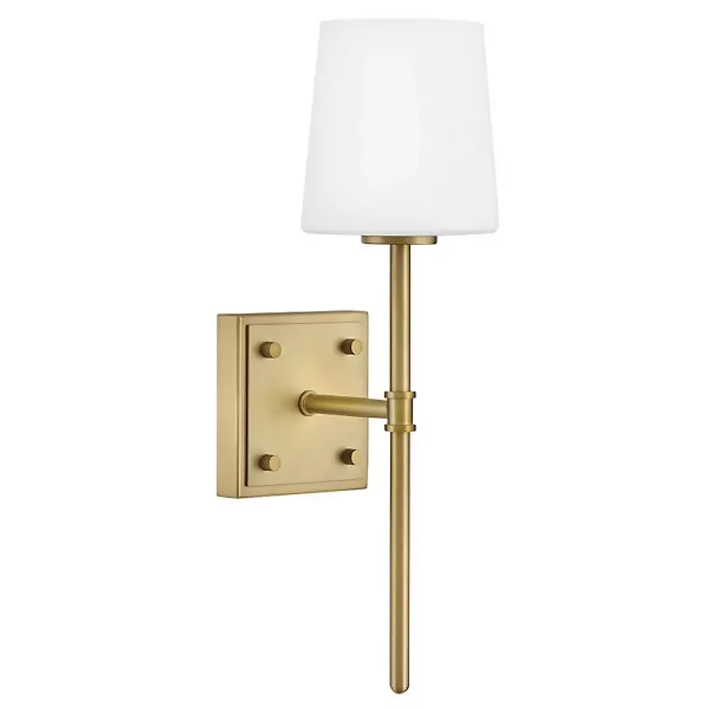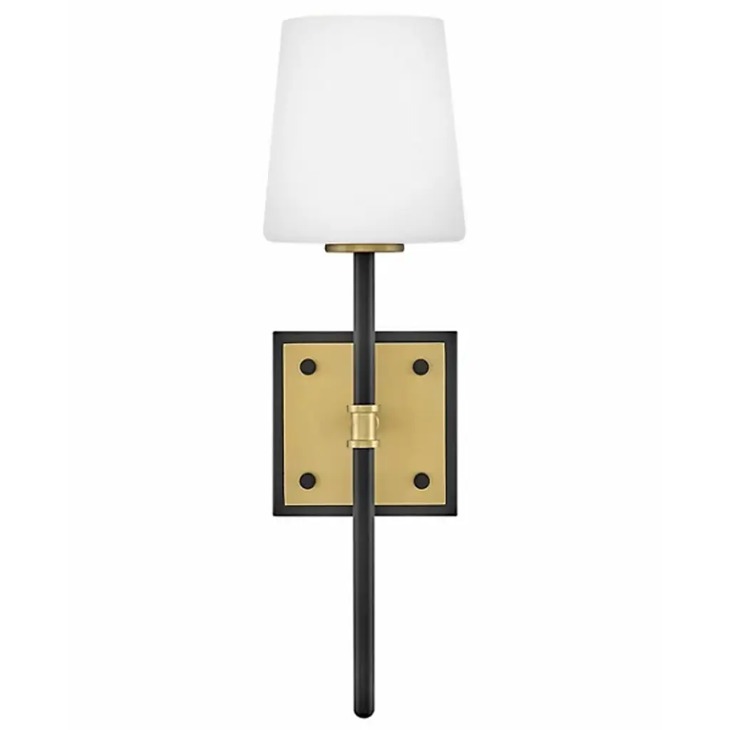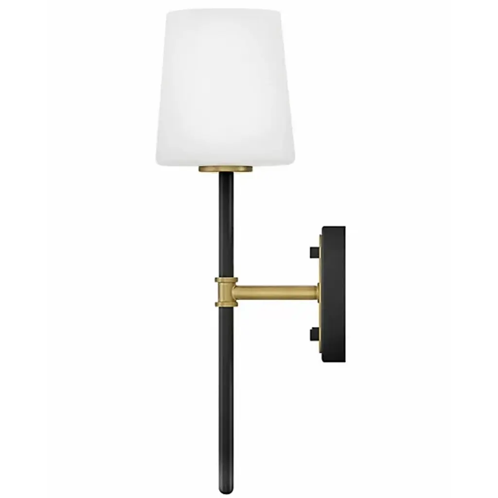 The Saunders Wall Sconce from Hinkley effortlessly combines striking appeal with a blend of traditional and captivating mid-century modern details. Its distinctive spoked silhouette and decorative stem holders create a unique aesthetic. Paired with blown, etched opal glass shades, Saunders perfectly balances timeless elegance and contemporary charm. Illuminate your space with a luminaire that harmoniously blends classic and modern elements, making Saunders a standout choice for adding character and sophistication to any room.