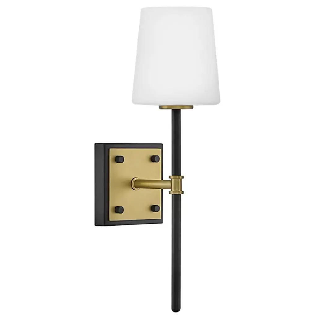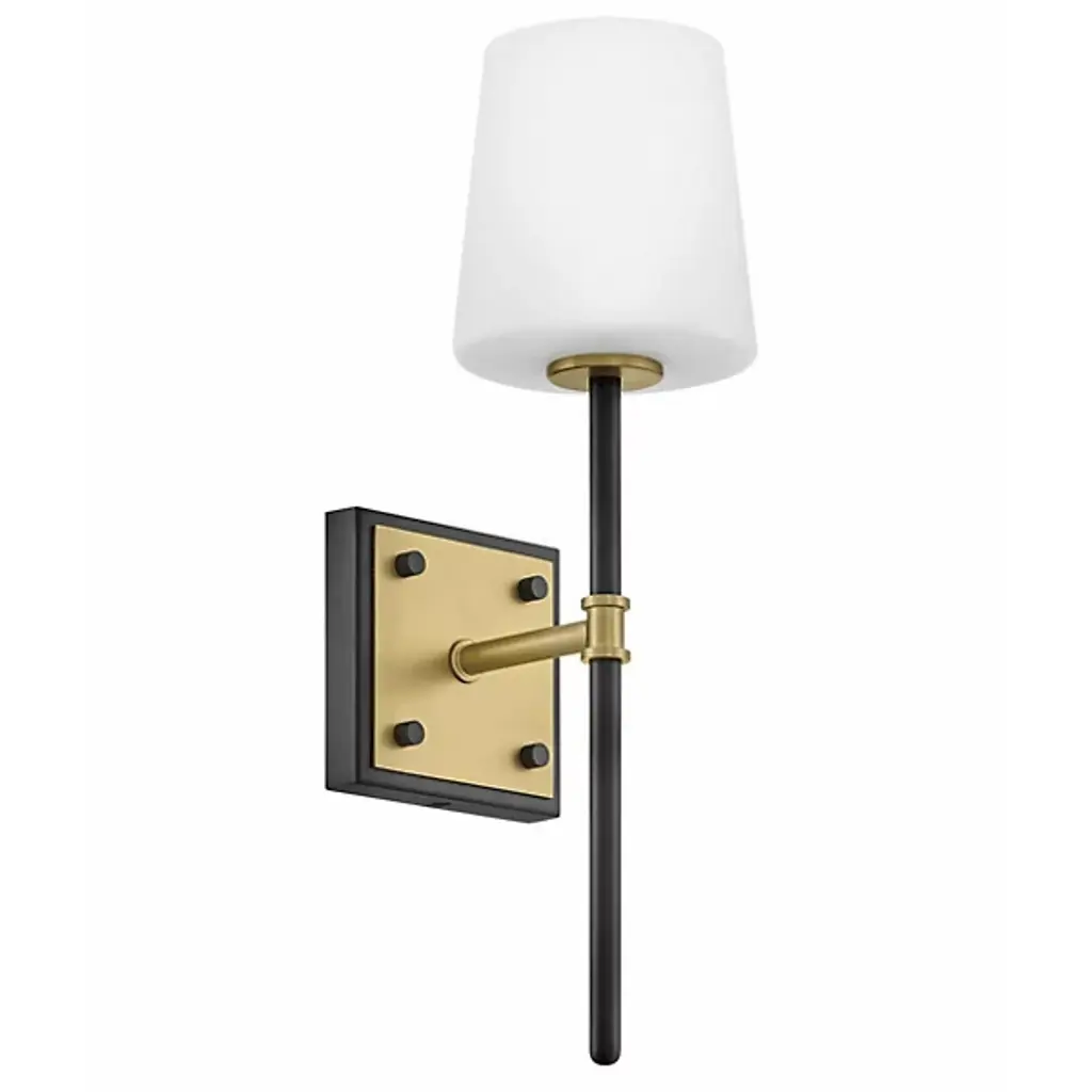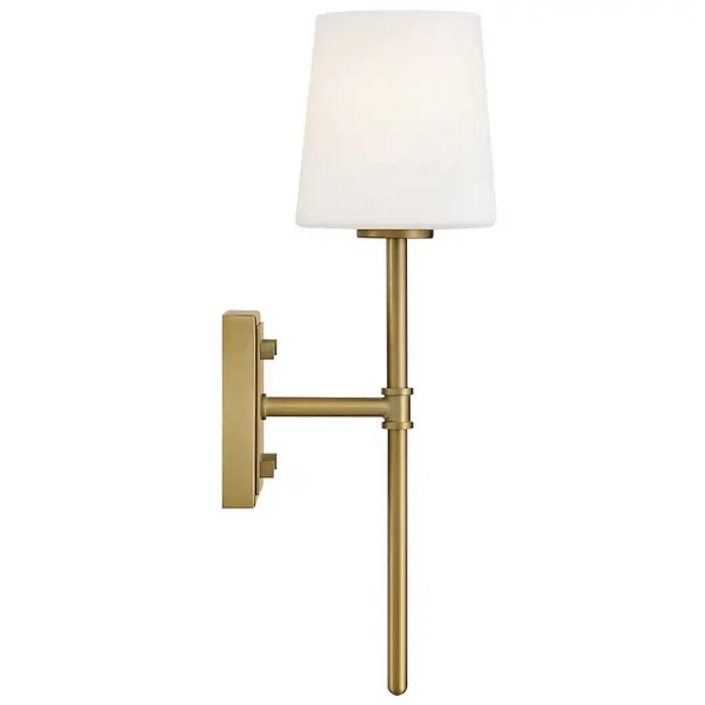 The Saunders Wall Sconce from Hinkley effortlessly combines striking appeal with a blend of traditional and captivating mid-century modern details. Its distinctive spoked silhouette and decorative stem holders create a unique aesthetic. Paired with blown, etched opal glass shades, Saunders perfectly balances timeless elegance and contemporary charm. Illuminate your space with a luminaire that harmoniously blends classic and modern elements, making Saunders a standout choice for adding character and sophistication to any room.