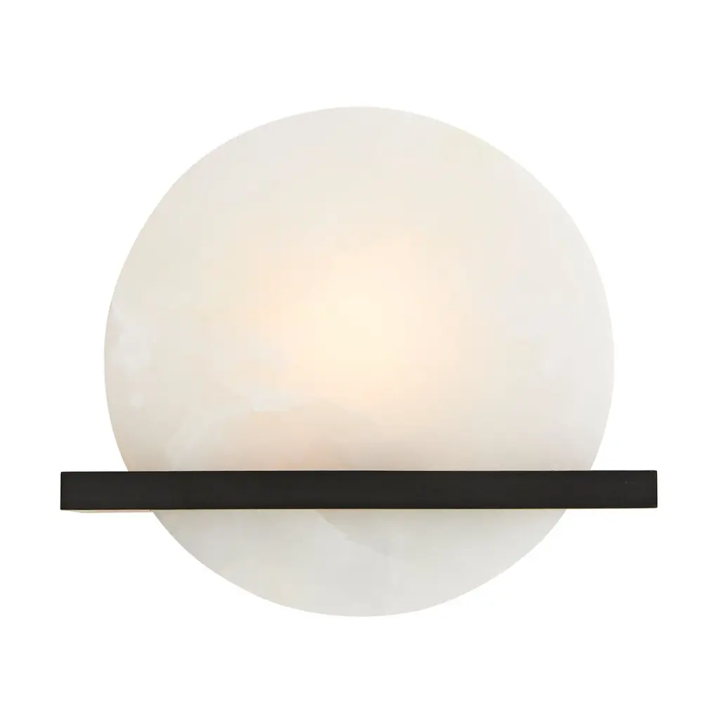 Gorgeous polished white onyx creates a warm filtered light and adds natural sophistication to any space. The bulb beneath accentuates the stone’s organic veins and features brilliantly as it rests perfectly in the frame. The fixture mounts directly from a steel frame finished in bronze. Approved for use in covered outdoor areas. Onyx will vary naturally in tone and texture.