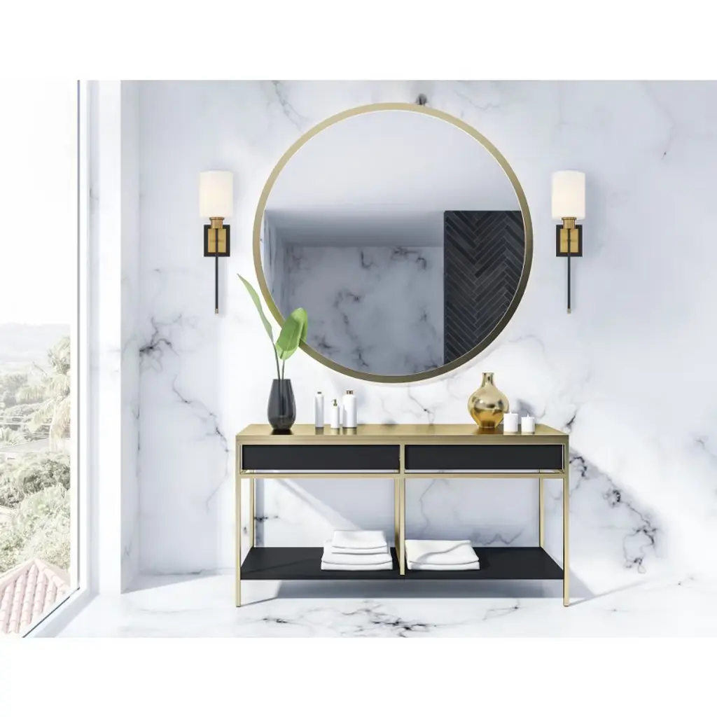 Bring a touch of midcentury modern inspired class to any room with this Savoy House Alvara 1-light sconce. A cylindrical shade of white opal glass is offset beautifully by a long, slender stem finished in matte black with warm brass accents. The square backplate also features the pairing of matte black and brass. Alvara is 22.5" in height and 5.5" in width. It extends 7.5" from the wall. Uses one standard size bulb of up to 60 watts. Damp area rated.