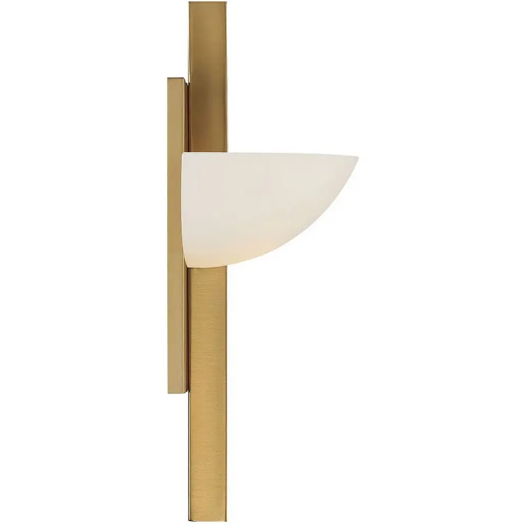 The Savoy House Fallon 1-light sconce draws inspiration from Art Deco style, bringing you a look that is both timeless and classic. A generously sized shade of white opal glass and a warm brass finish ensure bright, beautiful illumination. Fallon is 15" in height, 10" in width and extends 5.5" from the wall. Uses one G9 bulbs of up to 60 watts. Damp area rated.
