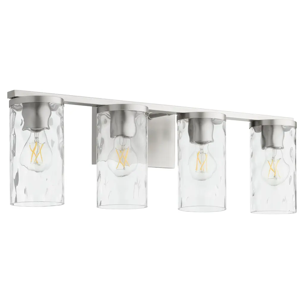 Collection: Genry, Material: Metal, Finish Color: Polished Nickel, Width: 25", Height: 7.75", Depth: 5.5", Backplate Width: 4.5", Backplate Length: 7.87", Lamping Type: Incandescent, Number Of Bulbs: 3, Wattage: 60 Watts, Dimmable: Yes, Moisture Rating: Damp Rated, Desc: Bring a beautiful ocean-inspired lighting look to your home with the Savoy House Genry 3-light bath bar. It is decorated with rippling panes of handmade glass and finished in Polished Nickel. Genry is 7.75" in height, 25" in width and extends 5.5" from the wall. It uses three candelabra size bulbs of up to 60 watts per bulb. Bulbs not included. This bath light is damp area rated and must be installed as shown.,