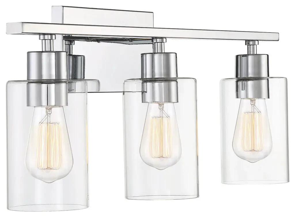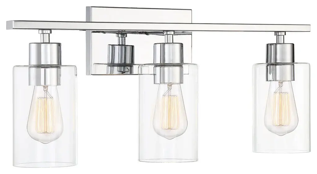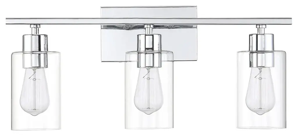 Three Light Bath Bar from Lambert collection in Polished Chrome finish. Number of Bulbs 3. Max Wattage 60.00No bulbs included. Chic, contemporary style defines the Lambert. The straight lines of the light bar, cylindrical glass shades, bulb sockets, and backplate have an uncluttered, modern aesthetic. And the beautiful polished chrome finish is pure elegance. This streamlined design works extremely well with transitional decor, too a terrific choice in your bathroom, dressing area, or powder room. Three 60W, E-style bulbs are visible through the clear glass shades, providing superb illumination. The fixture is 22`` wide by 9.75`` high and reversible: you choose whether to mount it as uplight or downlight. You`ll definitely like what you see when you have the stylish Lambert above your mirror. No UL Availability at this time.