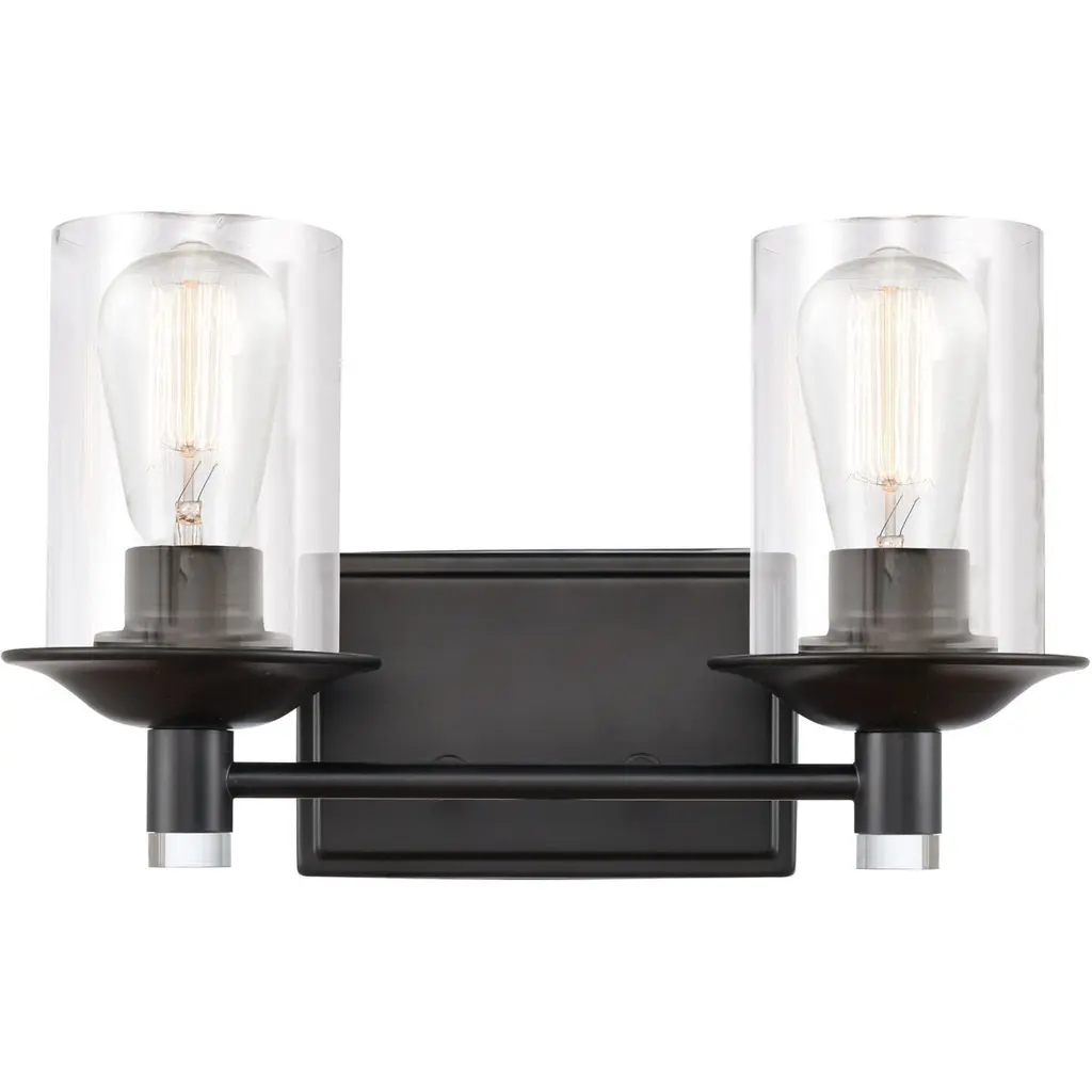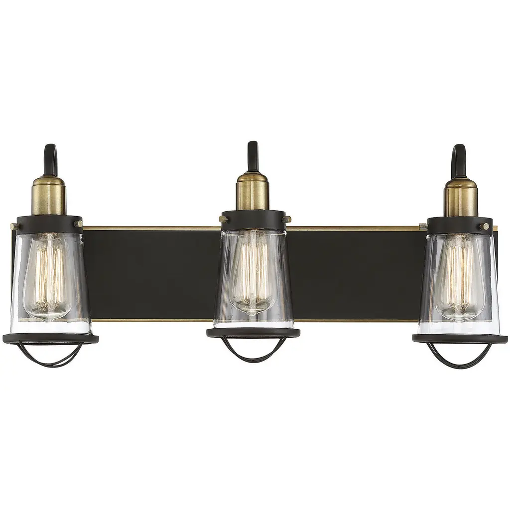 Industrial-inspired design, like this Lansing bath bar, brings a solid, practical, and vintage aesthetic to your home. The classic style is an excellent fit with industrial chic, modern farmhouse, urban loft, transitional, and eclectic decor. This bath bar features a sturdy rectangular wall plate, curved light arms, and cage-like details on the shade. And the entire frame has a beautiful, dark, English bronze finish with bright, warm brass accents. The slim tapered shades are made of clean, clear glass, allowing the light from two 60W, E-style bulbs to shine above your vanity. This fixture is 13.5” wide, 10” high, and extends 7” from the wall. It’s an impeccable choice for vintage industrial elegance in your bathroom or powder room.