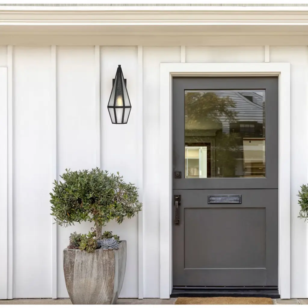 Collection: Peninsula, Material: Metal, Finish Color: Matte Black, Width: 7.5", Height: 18", Depth: 10.5", Backplate Width: 4.5", Backplate Length: 6.25", Lamping Type: Incandescent, Number Of Bulbs: 1, Wattage: 60 Watts, Dimmable: Yes, Moisture Rating: Wet Rated, Desc: Decorate your great outdoors with the highly glamorous Savoy House Peninsula 1-light outdoor wall lantern. Its tall, slim, diamond-like design showcases panes of art glass that obscure the light within and create lots of eye-catching texture. Matte Black finish. Peninsula is 18" in height, 7.5" in width and extends 10.5" from the wall. Uses one standard size bulb of up to 60 watts. The bulb is not included. Wet area rated.,