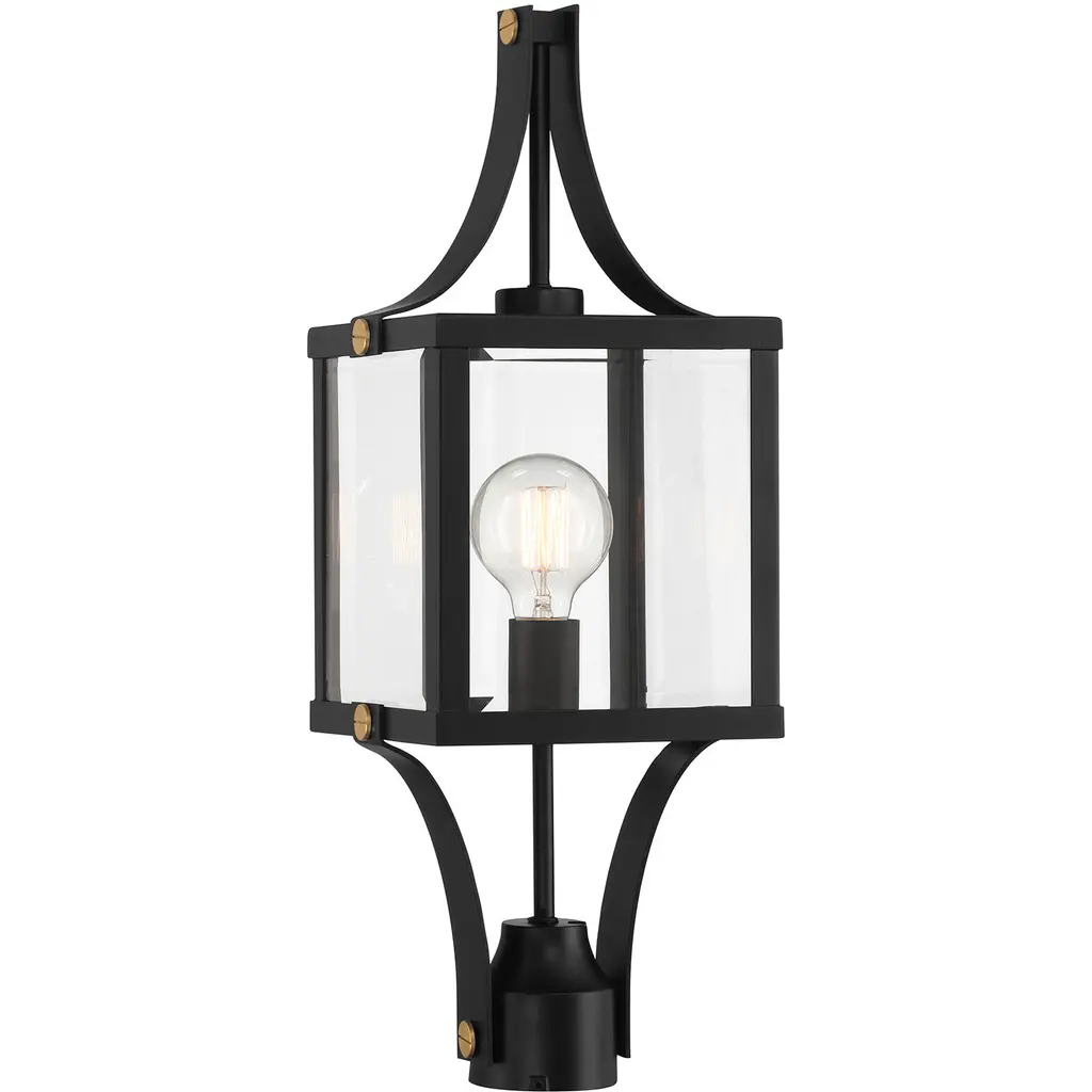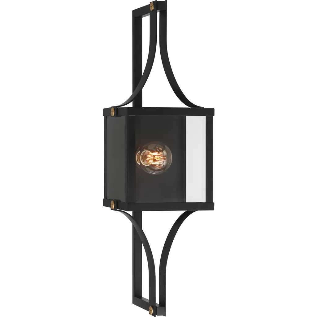 Collection: Raeburn, Material: Metal, Finish Color: Matte Black/Weathered Brushed Brass, Width: 5.5", Height: 18", Depth: 8", Backplate Width: 4.5", Backplate Length: 6.5", Lamping Type: Incandescent, Number Of Bulbs: 1, Wattage: 60 Watts, Dimmable: Yes, Moisture Rating: Wet Rated, Desc: Make your outdoor lighting super fashionable with the Savoy House Raeburn 1-light outdoor wall lantern. A central cube of beveled clear glass is surrounded by a boldly structured frame finished in Matte Black and adorned with thoughtful detailing in Weathered Brushed Brass. Raeburn is 18" in height, 5.5" in width and extends 8" from the wall. Uses one standard size bulb of up to 60 watts. The bulb is not included. Wet area rated.,