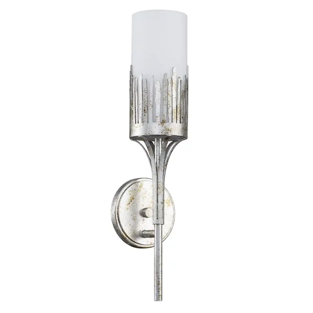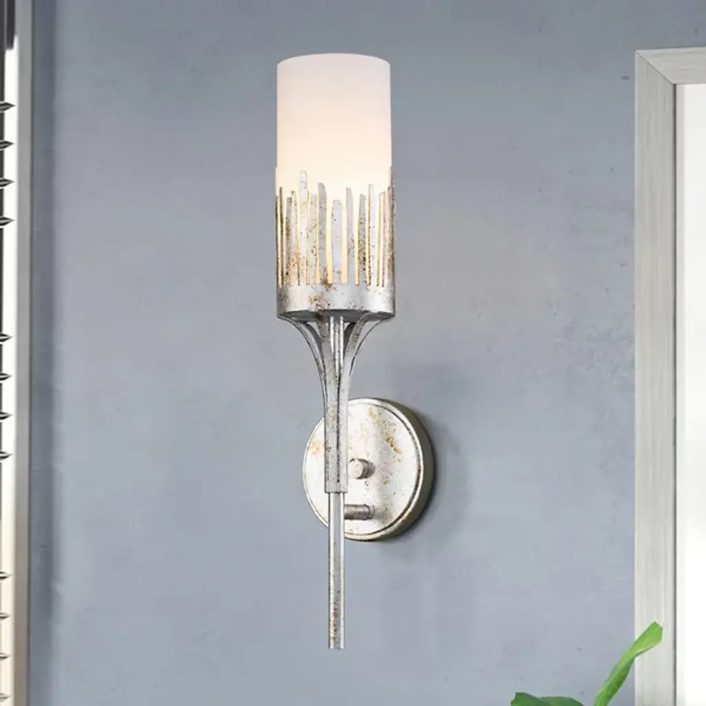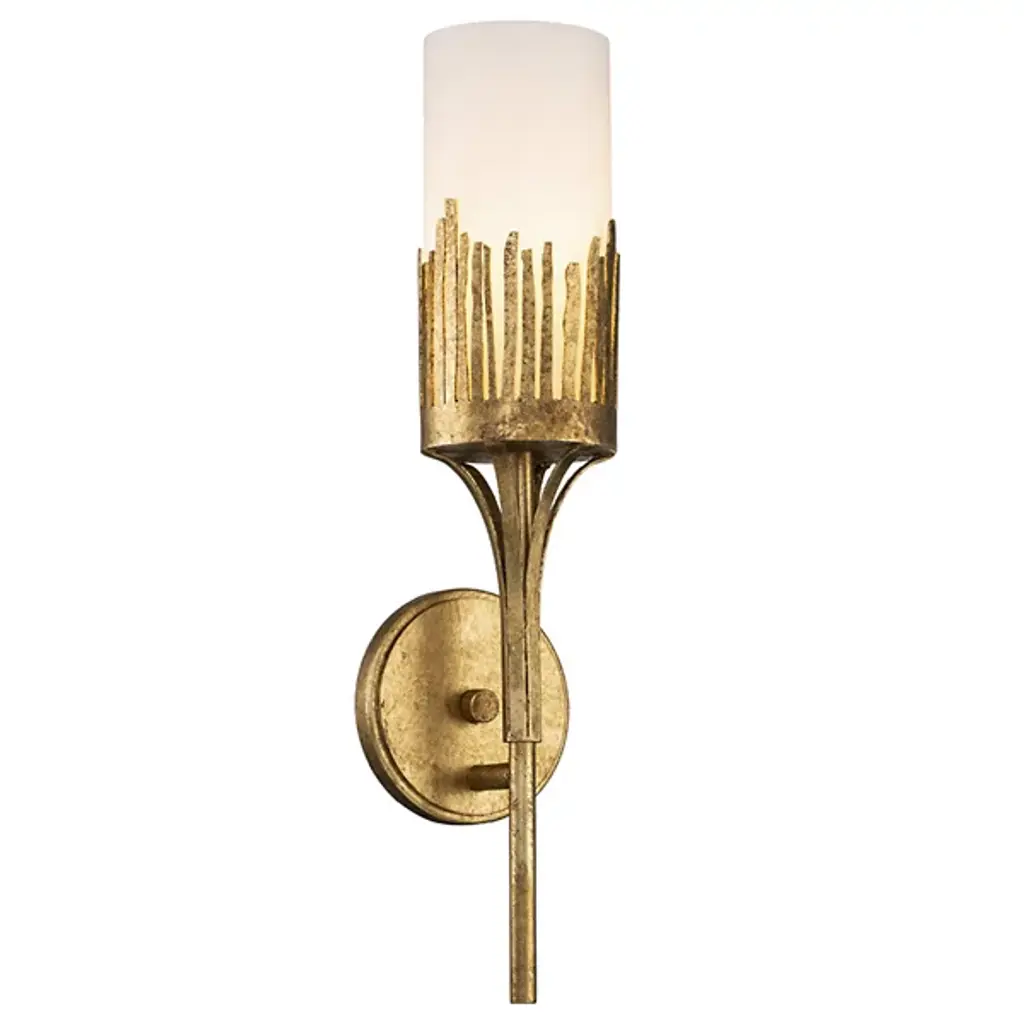 The Sawgrass 1-Light Wall Sconce from Lucas McKearn accentuates the regal side of the home with a torch-inspired figure and decorative details. It’s a transitional design one can appreciate in living spaces or transitional areas. It grabs one’s attention with the floating look of its slender, upward-sweeping stem. The metal stem’s deep texture carries onto the artful and organic lines decorating the top. An opal glass shade inside gives the lines a clean background while diffusing light into a cozy glow.