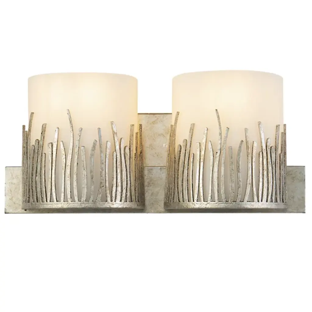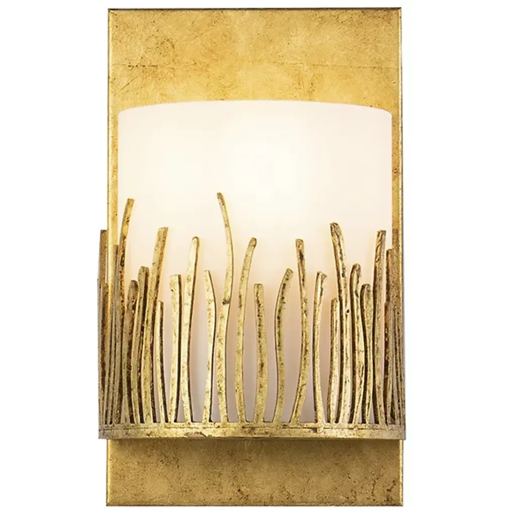 Find the light you love with this graceful and timeless silver leaf wall sconce. The relaxing and spa-like feel of this wall sconce, gives a beautiful silhouette that makes it the perfect choice to flank your bathroom mirror, place in your dining space or use in your favorite reading nook. The half drum piece of frosted glass sits perfectly in the silver grass-like holder allowing the perfect amount of light to flow into your space. Showing off our attention to details as the light beautifully shines through the bottom design as well as the grass-like shapes. Measuring 6" wide and 10" tall with a 4.5" depth, this wall sconce can be used in any space.