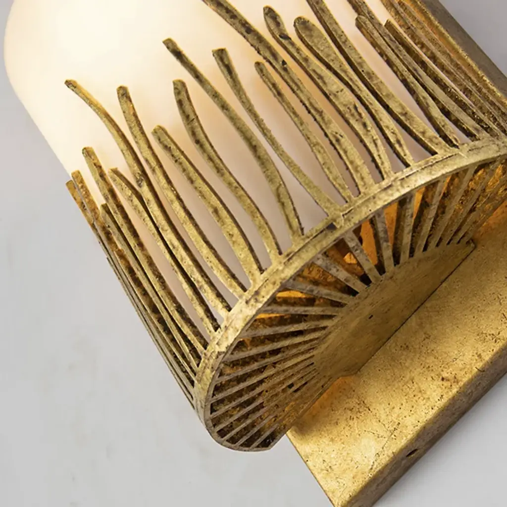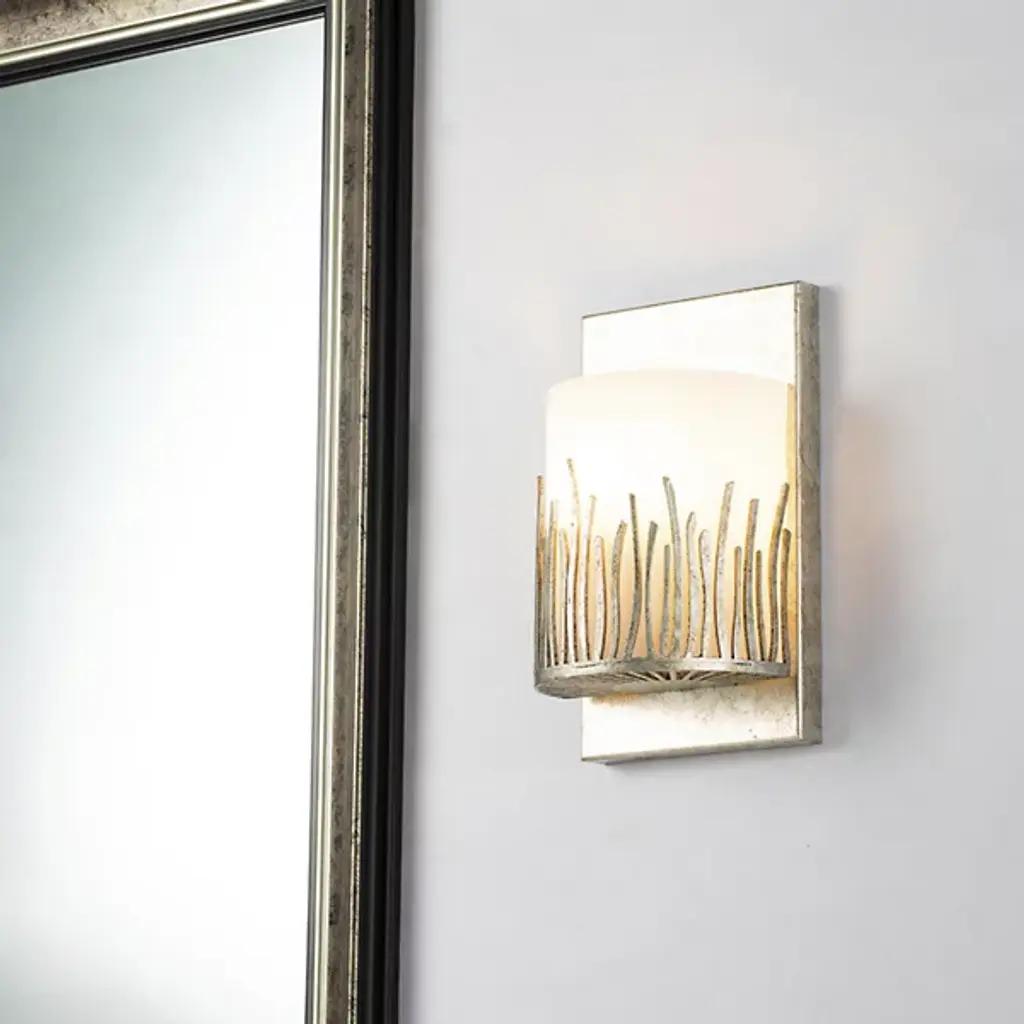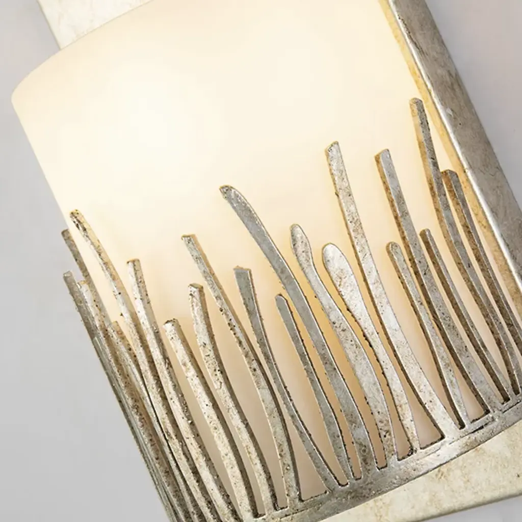 The silhouette of natural sawgrass serves as a muse for the Sawgrass Wall Sconce by Lucas McKearn. The sharply defined shapes surround and cup the sanded glass shade with an organic design sensibility. This light fixture’s cylindrical shade is readily illuminated with incandescent light that is easily dimmed when you pair the Sawgrass with a standard dimmer.