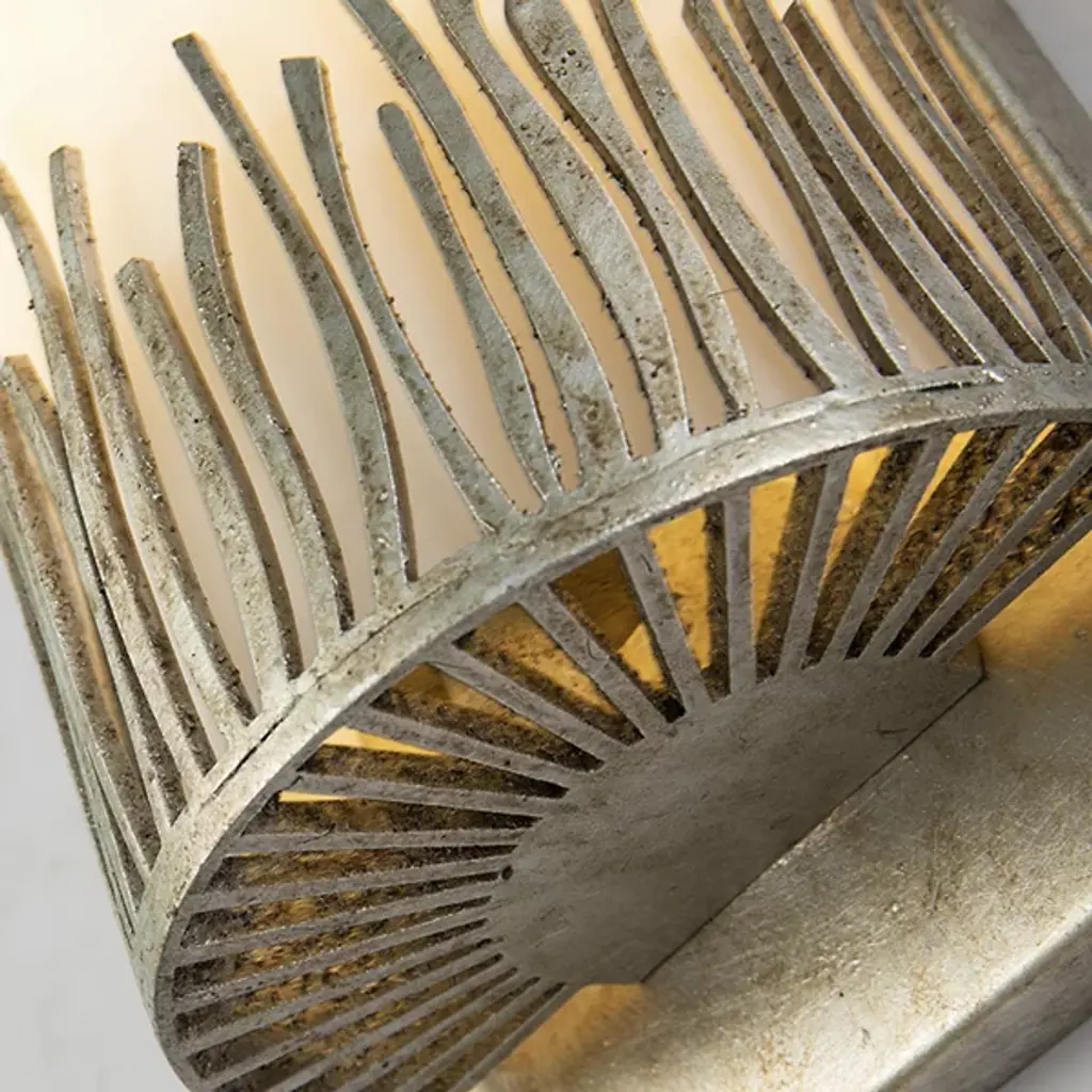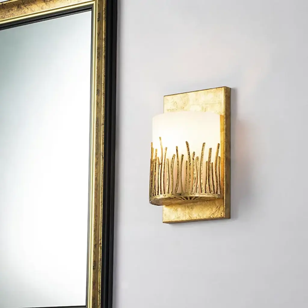 The silhouette of natural sawgrass serves as a muse for the Sawgrass Wall Sconce by Lucas McKearn. The sharply defined shapes surround and cup the sanded glass shade with an organic design sensibility. This light fixture’s cylindrical shade is readily illuminated with incandescent light that is easily dimmed when you pair the Sawgrass with a standard dimmer.