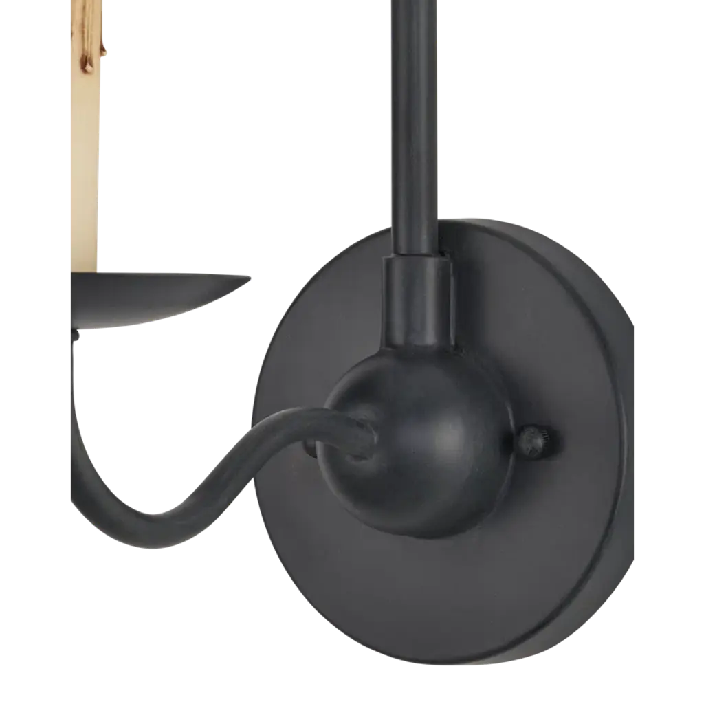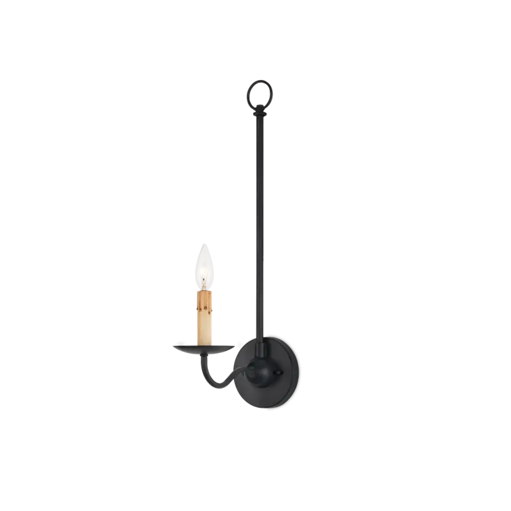 The Saxon Single-Light Wall Sconce harkens back to the early days of design in America with its nostalgic references. The Zanzibar finish, its slender lines, and its candle-sleeve with its faux drips make this sconce a terrific choice for modern farmhouse interiors, and its shape is perfect for even narrow walls where slenderness is a must.