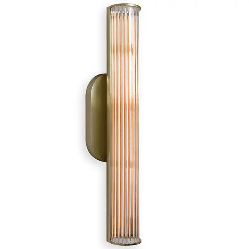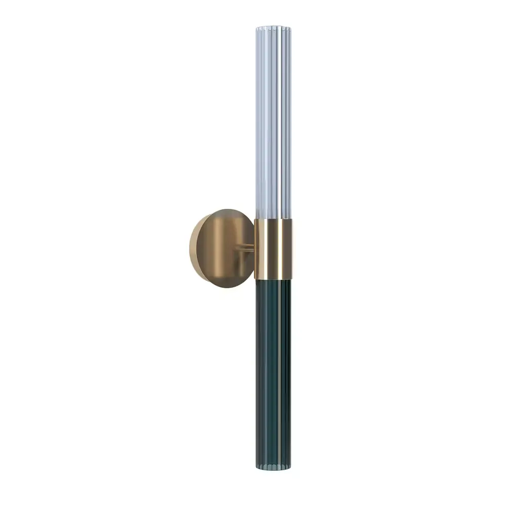 Sbarlusc wall lamp by Luce TuDimensions: 49 x 13 cmMaterials: brass and glassState-of-the-art technology and craftsmanship come together in this wall lamp with an almost timeless charm. Like a precious jewel, the SW01 wall lamp is perfect for enriching a space, without losing elegance and character.Sbarlusc in Milanese dialect represents the sparkle of a precious and very bright object. The colored glasses, which combine with each other creating games of color and light, are embedded in the illuminated bodies like glittering jewels.Entirely handmade by the craftsmen of the Milan area, these lamps are the conjugation between advanced lighting technology and fine and precise craftsmanship.LUCE TU is the story of two siblings in love with Milan, their hometown.With the aim of enhancing the historical artisan tradition of the city without losing its past legacy, each lamp contains a fragment of Milanese history. From the choice of the materials selected to design the lamps to the processes and skills chosen, our idea is to hand down the historical and cultural background which is inseparably linked to the soul of our lamps. Hence the choice for product names in old dialect.Thanks to the skilled hands of our artisans, who bring their valuable knowledge and handcrafting techniques, LUCE TU proposes handmade luxury lamps with a captivating New Decò style, deeply rooted in the history of the city.All our lamps can be wired according to each country. If sold to the USA it will be wired for the USA for instance.