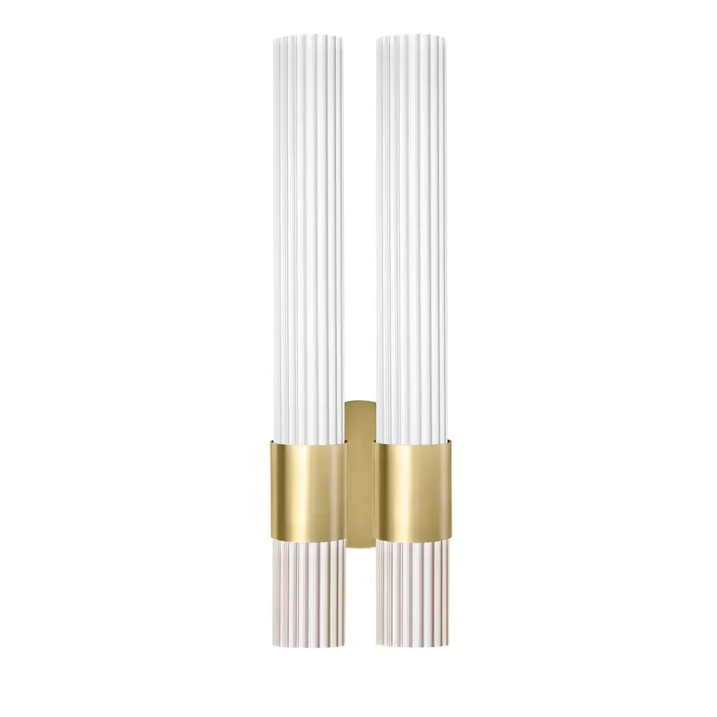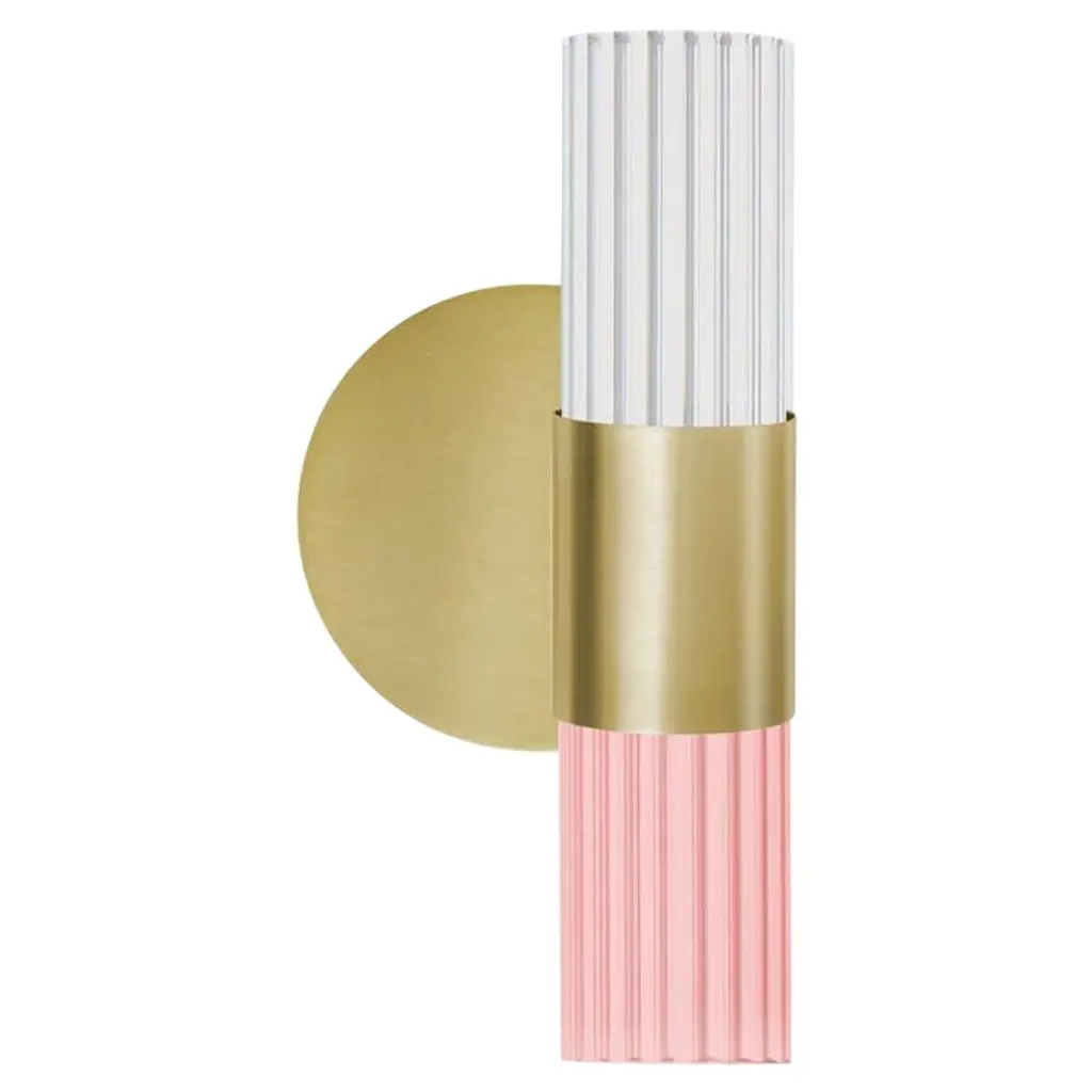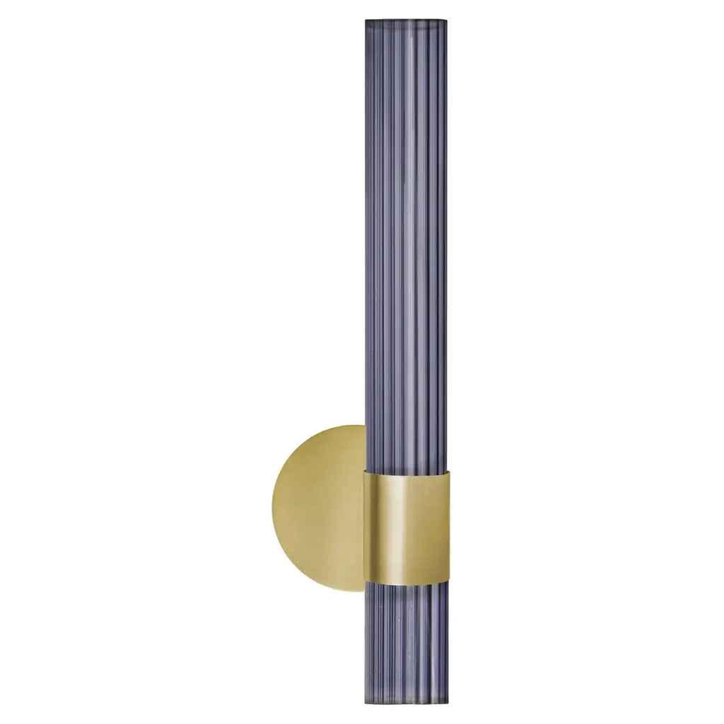 Sbarlusc wall lamp by Luce TuDimensions: 49 x 13 cmMaterials: Brass and glassState-of-the-art technology and craftsmanship come together in this wall lamp with an almost timeless charm. Like a precious jewel, the SW01 wall lamp is perfect for enriching a space, without losing elegance and character.Sbarlusc in Milanese dialect represents the sparkle of a precious and very bright object. The colored glasses, which combine with each other creating games of color and light, are embedded in the illuminated bodies like glittering jewels.Entirely handmade by the craftsmen of the Milan area, these lamps are the conjugation between advanced lighting technology and fine and precise craftsmanship.LUCE TU is the story of two siblings in love with Milan, their hometown.With the aim of enhancing the historical artisan tradition of the city without losing its past legacy, each lamp contains a fragment of Milanese history. From the choice of the materials selected to design the lamps to the processes and skills chosen, our idea is to hand down the historical and cultural background which is inseparably linked to the soul of our lamps. Hence the choice for product names in old dialect.Thanks to the skilled hands of our artisans, who bring their valuable knowledge and handcrafting techniques, LUCE TU proposes handmade luxury lamps with a captivating New Decò style, deeply rooted in the history of the city.All our lamps can be wired according to each country. If sold to the USA it will be wired for the USA for instance.