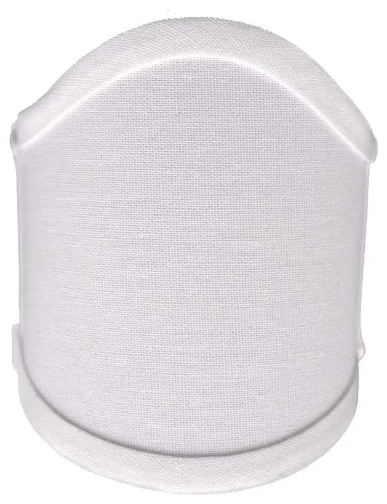 Dimensions: 4.25 inch top, 4.25 inch bottom, 5.25 inch height.Attachment Type: Clip on fitter designed for candelabra bulb.Material: White linen with fully lined hardback interior.Shape: Scalloped shield design with matching trim top and bottom.Application: Replacement for wall sconce or candle stick lamp.Give your wall sconce or candle stick lamp an instant update with this unique and stylish shade. Easily attaches to a candelabra bulb (40 watt maximum) with a brass flame clip, recessed 2 inches into top of shade. Rust-resistant frame and sturdy hardback construction. This half shade measures 4.25 inches across the top, 4.25 inches across the bottom, and has a 5.25 inch height to tip. Create a beautiful glow when lights are on. The subtle textures and timeless style give a naturally rich look. Shield or Half shades are uniquely designed to sit closer to the wall thereby "œshielding"� the light and saving space at the same time.