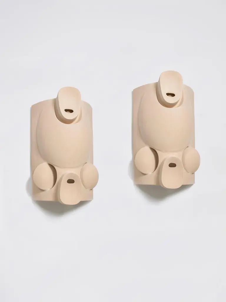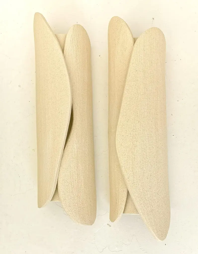 Sconces Palm Wall Lamp by Olivia CognetDimensions: W 20 x D 20 x H 50 cmMaterials: Ceramic.Each of Olivia’s handmade creations is a unique work of art, the snapshot of a precious moment captured in a world of fast ‘everything’.Since moving to Los Angeles in 2016, French artist and designer Olivia Cognet has focused on ceramics as the fertile medium through which she expresses her boundless creativity.With the freedom this material affords to explore every type of shape and size, she creates monumental bas-reliefs and giant totems as well as chairs, tables, lamps and vases.These unique pieces, handmade by the artist in her studio, all share the same high aesthetic, abstract and graphic standards. She draws inspiration from the lights and shadows of the landscapes of California, its modernist architecture and intense nature.Infusing a modern take on the great tradition of decorative arts, her works are both functional and powerfully evocative.Olivia Cognet grew up in Nice on the Côte d’Azur, studied at the Villa Arson and was nourished by the brilliant masters from the school of Vallauris, from Picasso to Roger Capron; for her, ceramics are a key element of architecture.She starts by exploring ideas on paper, before moving to stoneware, using a local clay that comes in three natural shades. Her designs showcase the power of contrasts; her minimal, geometric lines are interwoven with a sensual and organic vocabulary.The austere aesthetic of rough clay is heightened by the elegance of the crackle glazes, which generate singular effects.Elsewhere, ethereal excrescences defy the laws of gravity.Day after day, guided by her intuition, Olivia Cognet reinvents the poetic experience of creation, fashioning work through the purity of the material. This is the magic of the artisan, combined with the promise of vibrant beauty, to enhance everyday life.Marion Vignal.All our lamps can be wired according to each country. If sold to the USA it will be wired for the USA for instance.