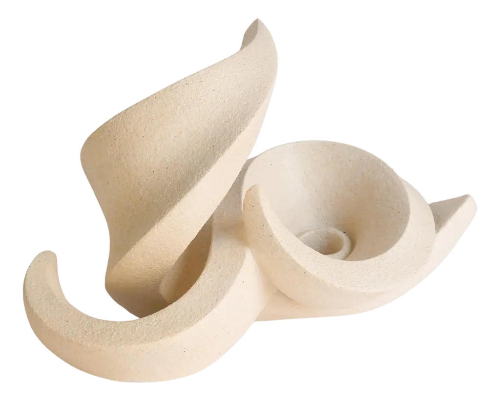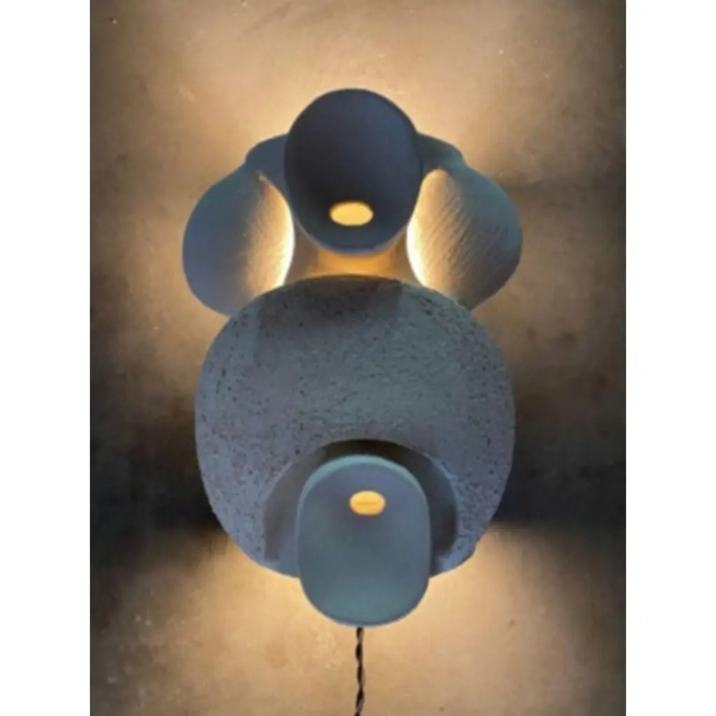 Scones lamp by Olivia CognetMaterials: Ceramic.Dimensions: D 20 x H 30 cm Non electrified.Each of Olivia’s handmade creations is a unique work of art, the snapshot of a precious moment captured in a world of fast ‘everything’.Since moving to Los Angeles in 2016, French artist and designer Olivia Cognet has focused on ceramics as the fertile medium through which she expresses her boundless creativity.With the freedom this material affords to explore every type of shape and size, she creates monumental bas-reliefs and giant totems as well as chairs, tables, lamps and vases.These unique pieces, handmade by the artist in her studio, all share the same high aesthetic, abstract and graphic standards. She draws inspiration from the lights and shadows of the landscapes of California, its modernist architecture and intense nature.Infusing a modern take on the great tradition of decorative arts, her works are both functional and powerfully evocative.Olivia Cognet grew up in Nice on the Côte d’Azur, studied at the Villa Arson and was nourished by the brilliant masters from the school of Vallauris, from Picasso to Roger Capron; for her, ceramics are a key element of architecture.She starts by exploring ideas on paper, before moving to stoneware, using a local clay that comes in three natural shades. Her designs showcase the power of contrasts; her minimal, geometric lines are interwoven with a sensual and organic vocabulary.The austere aesthetic of rough clay is heightened by the elegance of the crackle glazes, which generate singular effects.Elsewhere, ethereal excrescences defy the laws of gravity.Day after day, guided by her intuition, Olivia Cognet reinvents the poetic experience of creation, fashioning work through the purity of the material. This is the magic of the artisan, combined with the promise of vibrant beauty, to enhance everyday life.Marion Vignal.All our lamps can be wired according to each country. If sold to the USA it will be wired for the USA for instance.