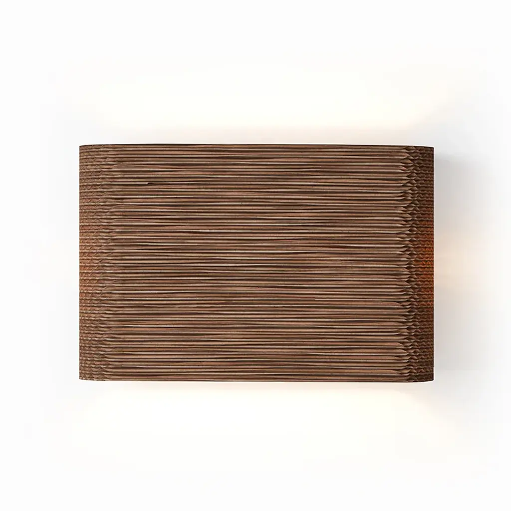 With Scraplights, we continue to play and explore ways to apply cardboard in new and unique expressions. Skew is the first Scraplights sconce and the perfect complement to any Scraplights silhouette. Offered in three sizes, each is ADA compliant at 4 (10.2cm) in-depth and uses a LED lamp. Available in three finishes Natural, White and Blonde – the Skew sconce would beautifully illuminate a hallway in an office or hotel, or could just as easily rest above. Features