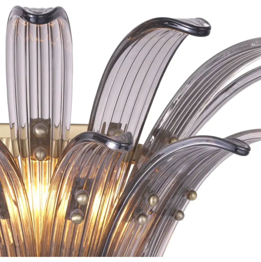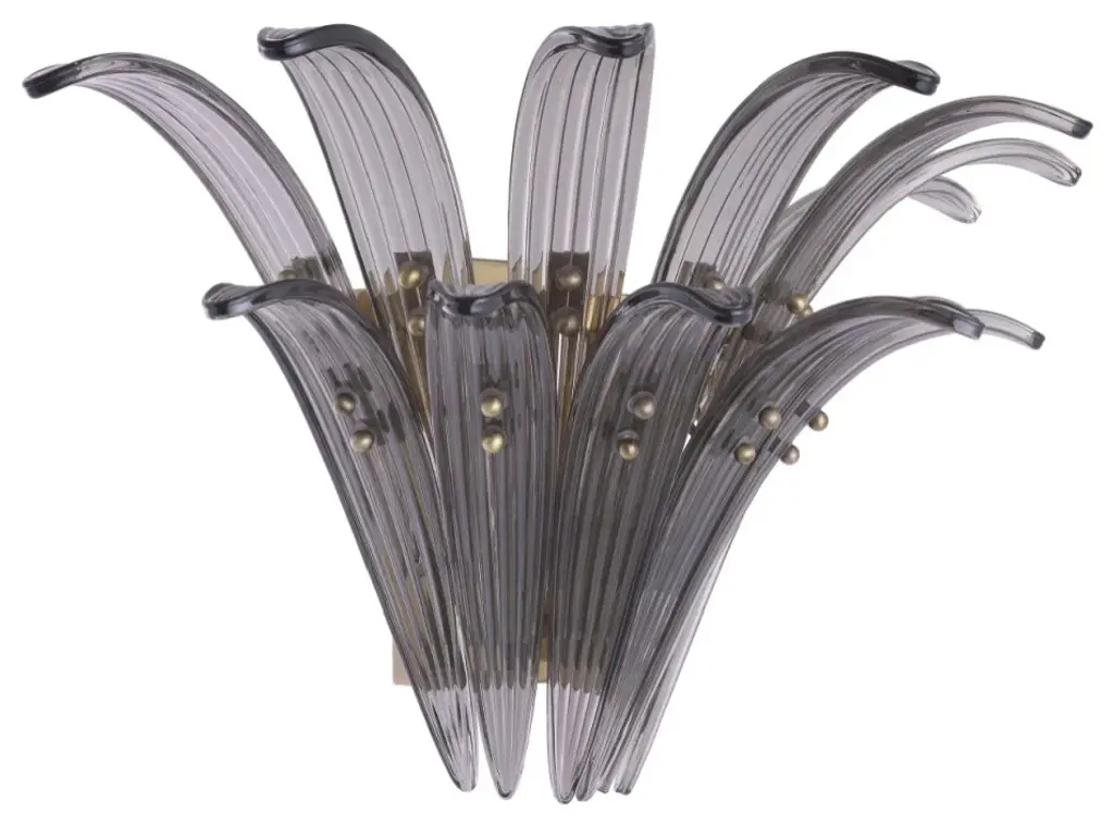 Two-tiered wall lamp made with pieces of sculptural flared smoke glass. Italo by Eichholtz brings a sense of exuberance to a room. An lovely gem of a lamp, perfect for stylish hallways and luxurious spaces.W20 x D11 x H12 in | Weight 9lbsMaterials | Steel, GlassBulbs (not incl.): Max. 5W - E12 - 110 Volt