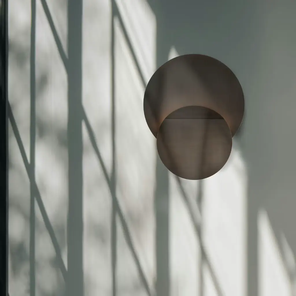 Brimming with the effortless grace of a contemporary objet d'art, this brass sconce will fit in refined residential or professional settings with equal ease. The clever combination of two disks - only partially overlapped - allows for an illumination effect that is at once delicate and spectacular. Flaunting an intriguing burnished finish, it is also available in different versions. Please contact the Concierge for details.