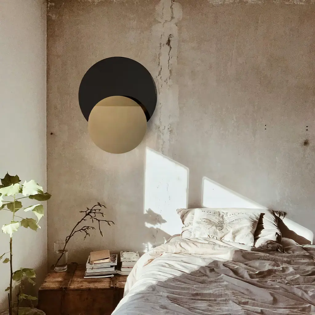 Sure to infuse both residential and professional contexts with striking elegance, this sconce is a triumph of pure geometric forms offered in a warm chromatic duo. Two partially overlapped disks compose its refined metal structure that evokes breathtaking lunar spectacles while stating an unmistakably modern allure.