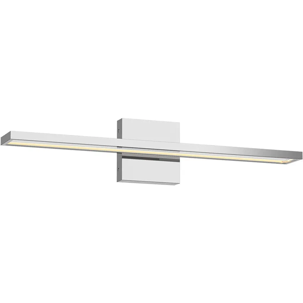 Designed with modern appeal, the Banda 36 Bath Bar by Sean Lavin provides a clean aesthetic with straight-lines and crisp edges enveloping integrated LEDs providing up and downlight. Designed at a generous length of 36 inches, Banda is perfect for vanity and bathroom lighting. Available in three modern finishes, a Natural Brass that will patina over time, Chrome and Matte Black to fit your modern style. Lamping options are compatible with most dimmers. Refer to Dimming Chart for more information. Features