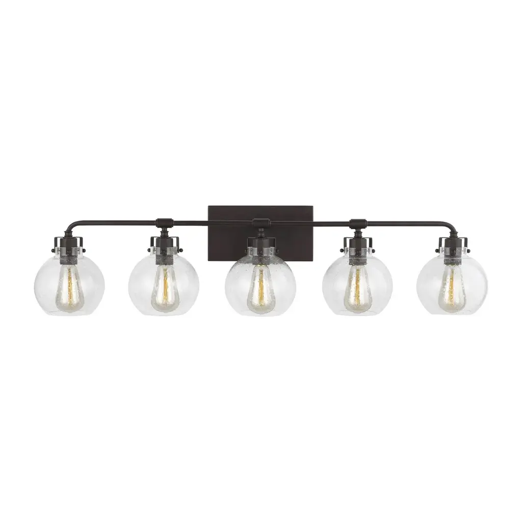 The Sean Lavin Clara Collection features Clear Seeded glass shades that subtly diffuse the lamping while allowing the exposed bulb to be a central design element of the fixture. Choose the look that's right for your space with four finish options: Chrome, Satin Nickel, Oil Rubbed Bronze or a two-toned finish of Textured Black with Polished Nickel. Features