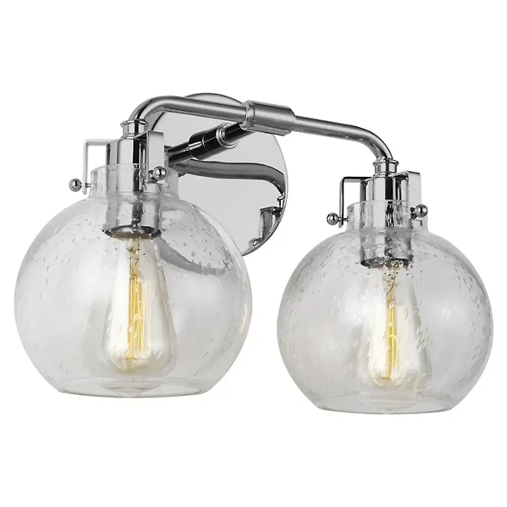 Elevate your bathroom ambiance to a level of sophistication and luxury with the Clara Bath Light by Visual Comfort & Co. Its unique combination of Clear Seeded Glass shades and a Steel stem fuses tones of transparency, rugged texture, and sleek metallic luster, to create a stunning and inviting atmosphere. An exquisite choice for adding glamour and grit to any bathroom setting. Highlights