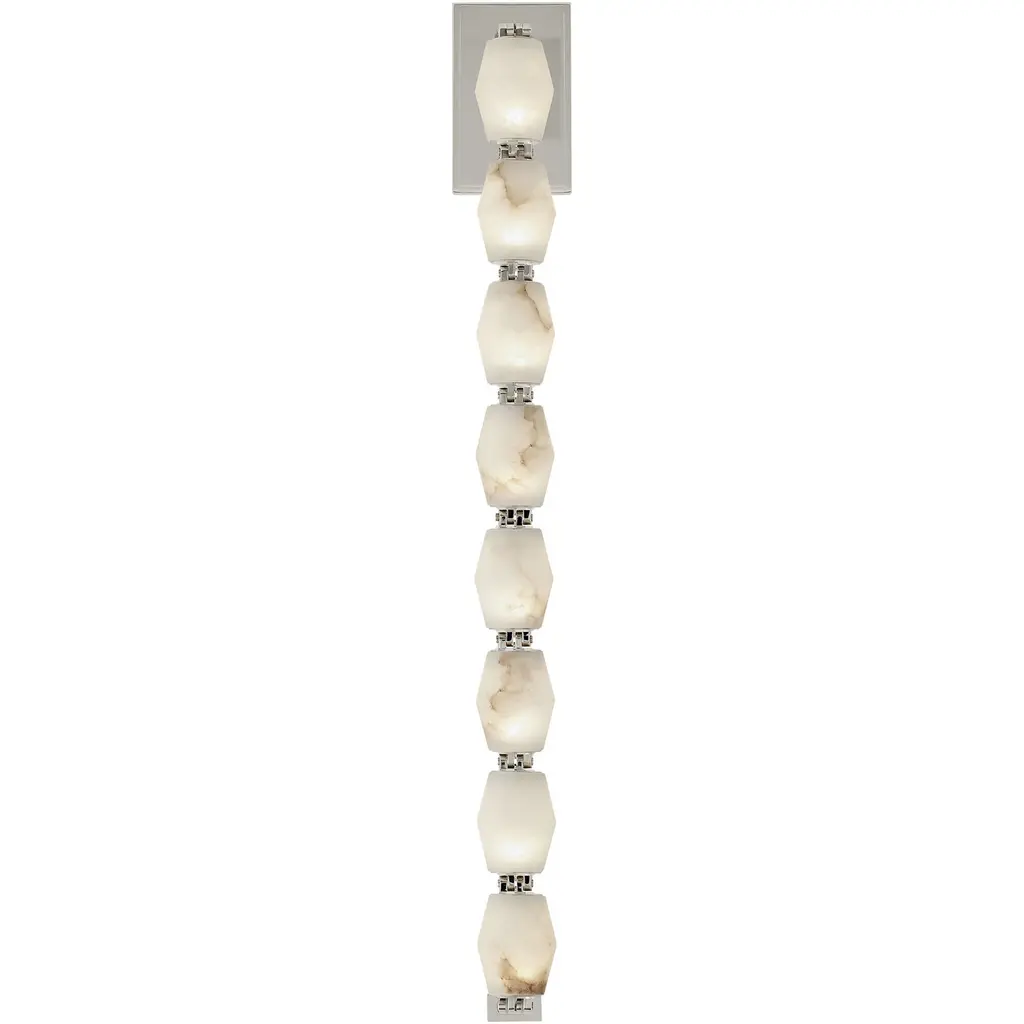The Collier by Sean Lavin exudes luxury and sophistication. Solid faceted Alabaster Glass fully encapsulates integrated LED modules interlocked by solid brass connectors. Available in multiple-length strands for the ultimate customization. Creates an incredible light sculpture with stunning illumination. The Collier features solid faceted Alabaster Glass manufactured in the Czech Republic. The natural brass connectors are custom engineered to support the glass and add additional beauty to the piece. Available with remote or surface mounted driver options. Predetermined length options allow for easy ordering with virtually unlimited versatility. Contact factory for custom configurations.