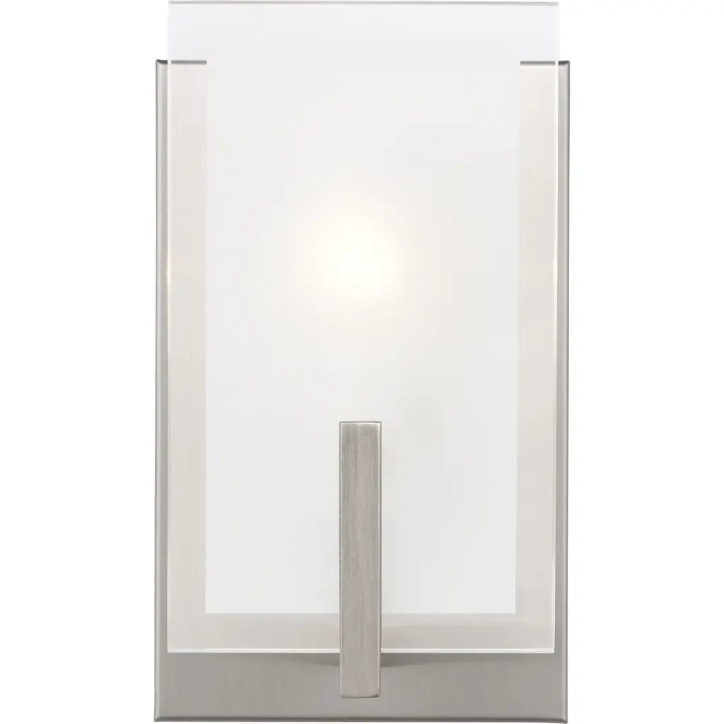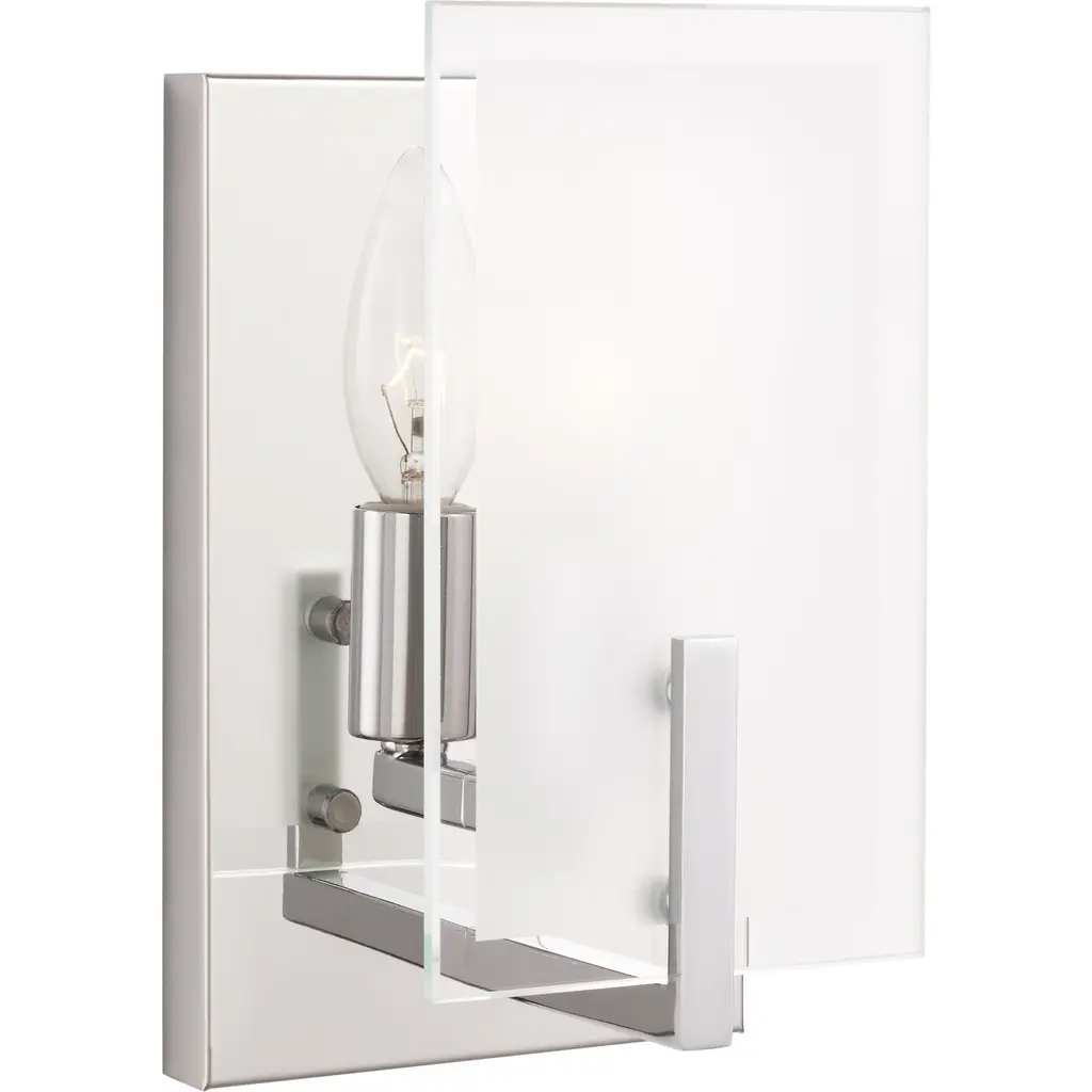 The Syll one light wall sconce in chrome offers shadow-free lighting in your powder room, spa, or master bath room. Syll features a stylish frame with brilliant frosted beveled glass panels.