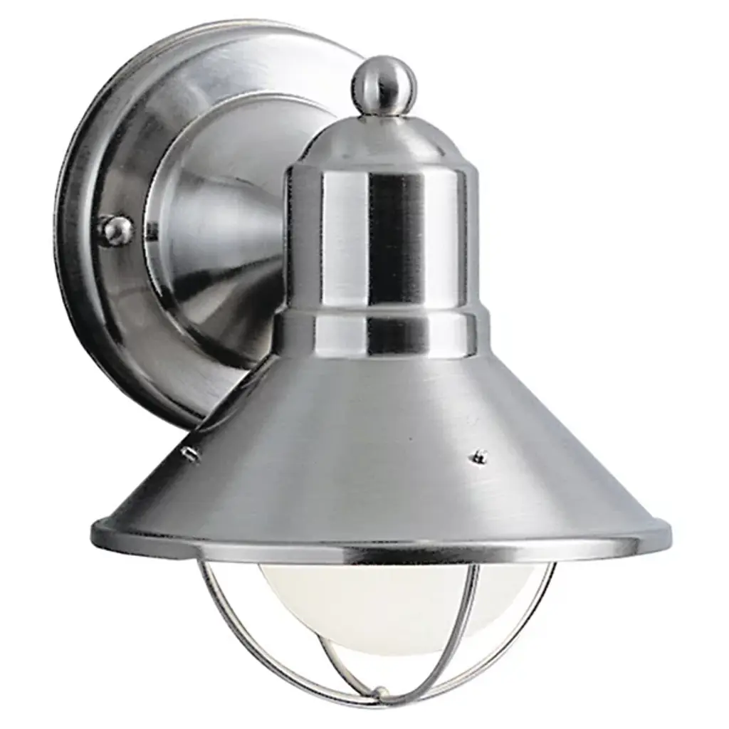 Classic and nautical. The Seaside Outdoor Wall Sconce by Kichler has the iconic lantern shape that will complement a range of exterior decor styles. From the cage design underneath the bulb to the gooseneck arm and A-line roof, this outdoor scone will bring an aura of the coast and a cool sea breeze to any location.
