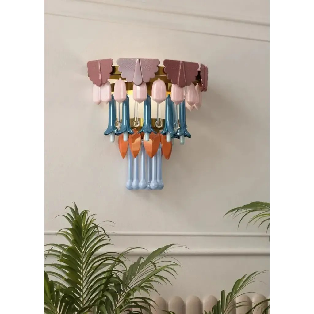 Wall lamp from the Seasons collection, inspired by the Art Decó style and nature. An iconic Spanish brand, Lladro is a world leader in the creation of porcelain art. Started by brothers Juan, Jose and Vicente Lladro in 1953, the ceramic figurines were initially inspired by the works of great European manufacturers like Meissen and Sevres. Over time, a unique style was forged, consisting of elongated lines, a revolutionary single-firing method, and soft pastel tones.